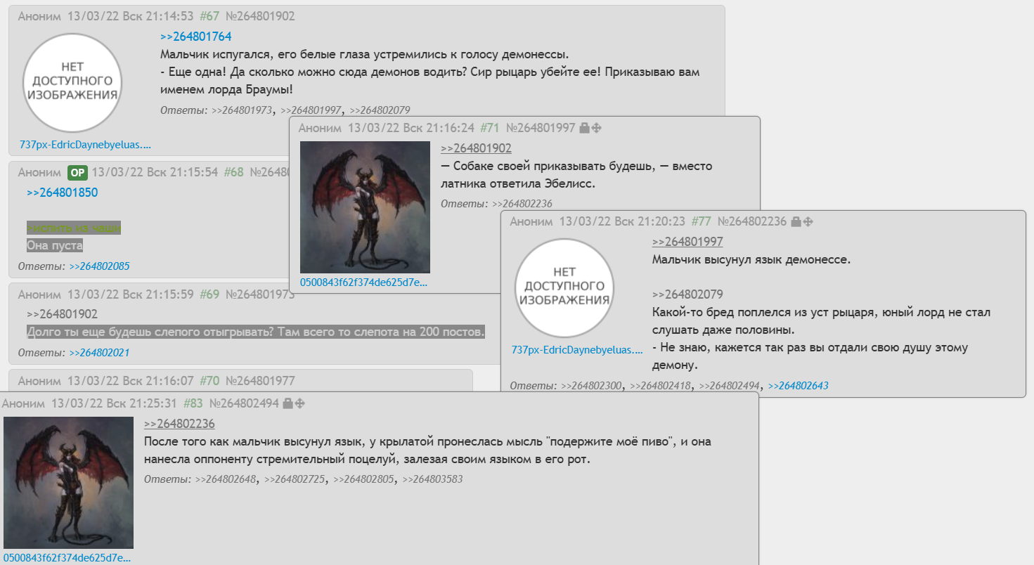 >>1584040 Антея, спокойно. Ты просто на один тред всего залетела, а ролекуки на тот момент уже слизывали за Иларой. Если бы разгульное еще пару тредов пожило, может, и за тобой бы кто-то слизал