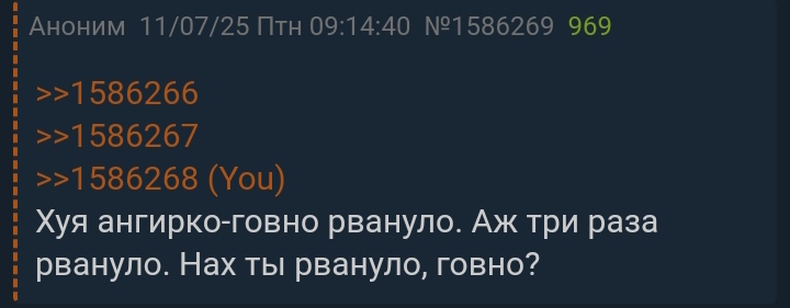 >>1585784 Что-то они там сами запутались. То у них вирус-хуирус, то доллар вот-вот, то Китай вот-вот, то Европа вот-вот, то Канада и Гренландия вот-вот, то Пакистан вот-вот, то 16 миллиардов паролей вот-вот, то Иран вот-вот, в общем отака хуита как с началом Холодной началась, так до сих пор вот-вот.