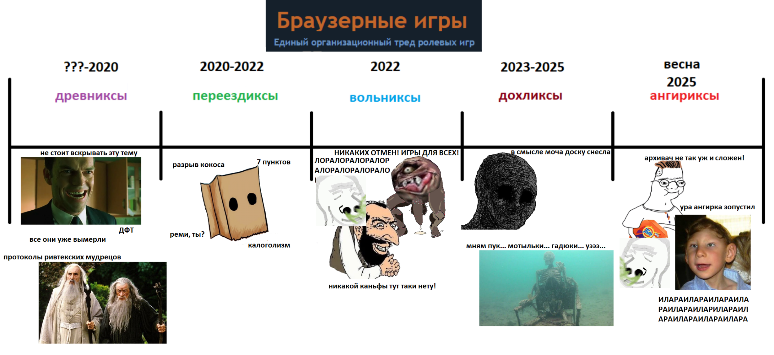 >>1586563 >Сравни среднее количество символов в постах тогда и сейчас. Писать стали медленнее, но больше и качественнее. Сравни количество игроков. Думаю, тут пояснения не требуются. Тогда (до 2022) игроков было больше. Писали они быстрее и качественнее. В 2022 приперлись конфобляди, кумеры бордельные, прочие графочмони и все засрали. Причем уровень постинга с 22 года как был на дне так и остался.