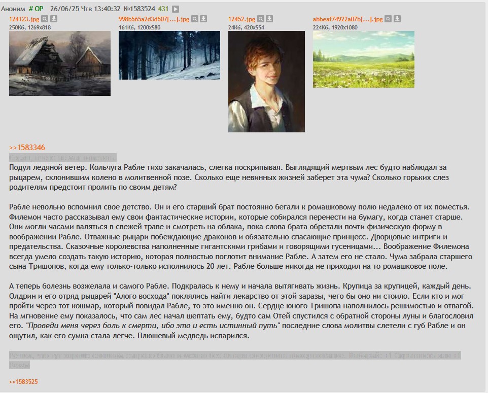 Алсо, спасибо девчонкам за ночной постинг. Бампинг без орков, так ещё и атмосферы напускает и персонажей раскрывает. Лепота, всем пример. ОП, спрашивал в треде, переспрошу здесь — продолжение будет в том же треде или пересоздашь?