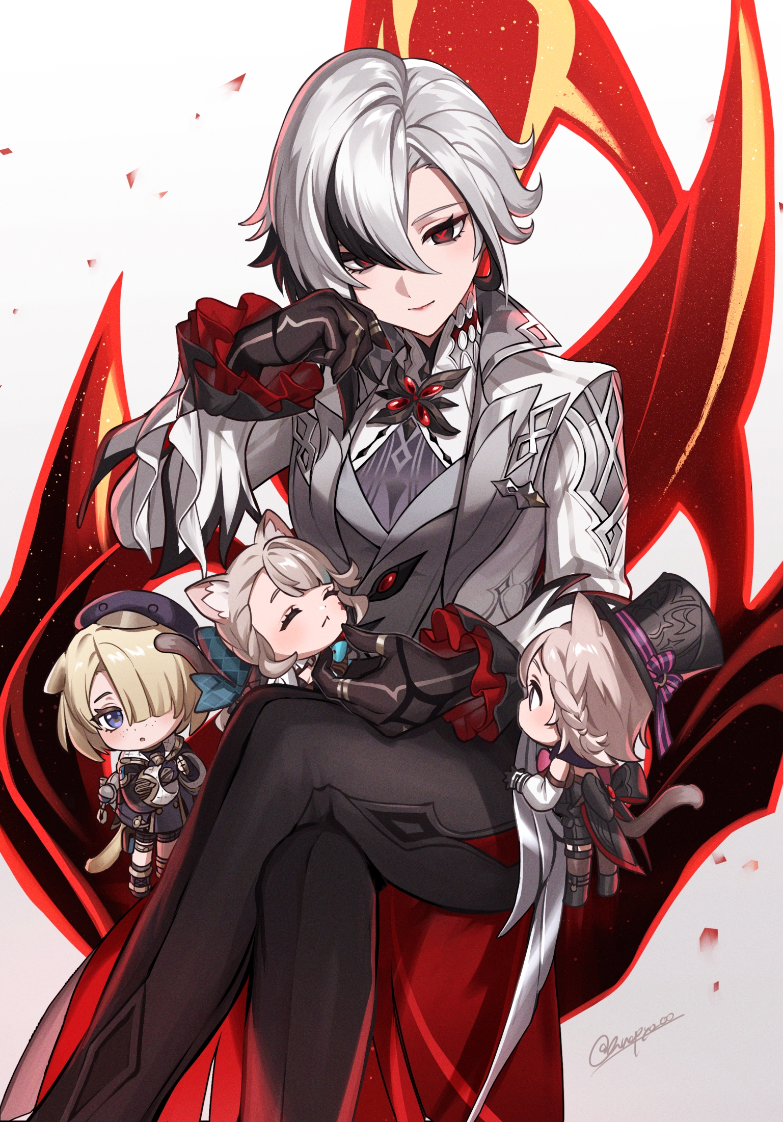 Капистонис набрал себе стресса в подземелье и впал в психоз. Арлекино приходится дать ему полежать на своих коленках, чтобы тот не помер от разрыва сердца