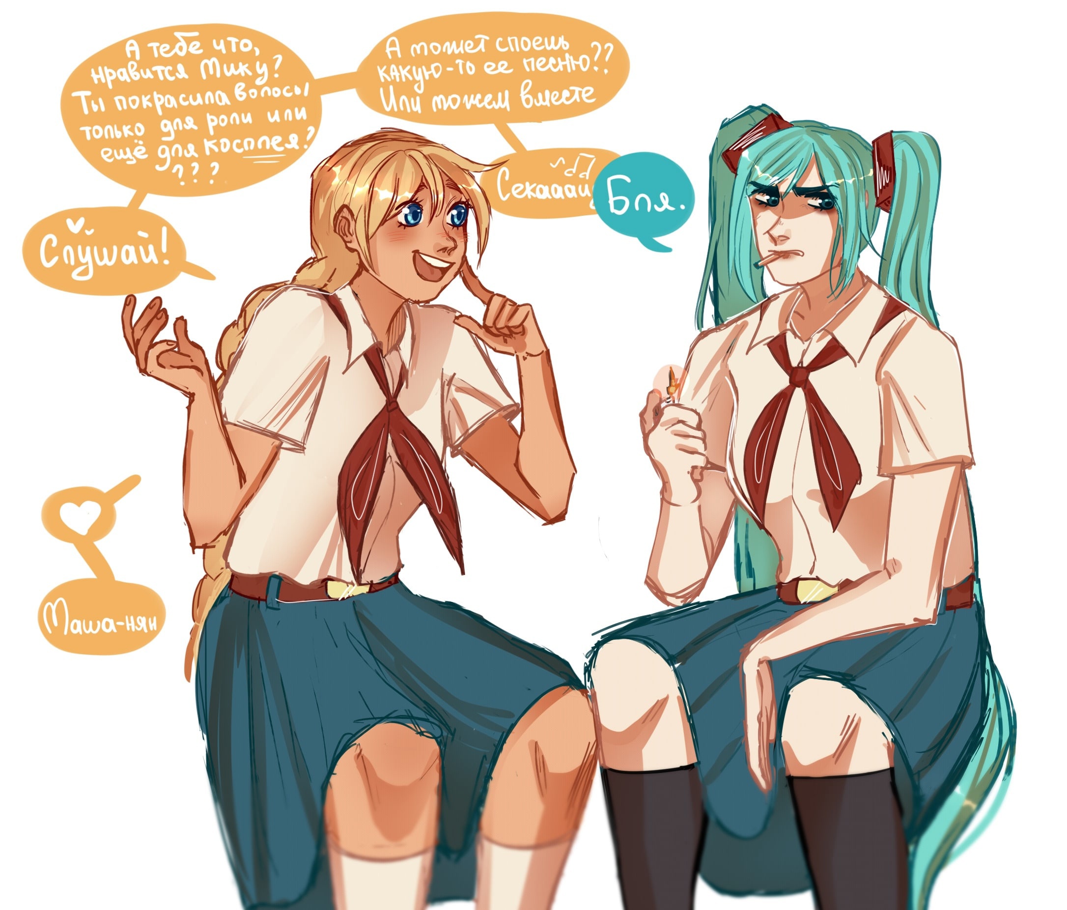 Арлекино решила "помочь" ставшей немой Писе и побыть её сурдо-переводчиком. Чувство юмора, однако, у неё имелось знатное. В ответ на вопрос Кёко о том, зачем Писе нужен посредник, маходевке ответили: "Она – со мной, углепластик. Так охладите трахание. Я рассматриваю её пользу"