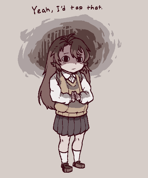>>1599131 >как меня заебали бесконечные SHE HAS A PERFECT BODY, HER ASS IS THICK Вот поэтому я и не люблю западные 3д порноигры, там все такая кринжуха для нормисов хентай-любознательных. Диалоги прям из порнухи 90-х, каких-то интересных ситуаций и сцен обычно нет, из фетишей максимум чисто чулки, большие сиськижопы, ну и конечно тоже избитый инцест, училки и т.д.. Типа разве не лучше прочитать тогда эроге, или поиграть в годноту с рпгмейкера, или койкатсу и другие игры от иллюженов... >Постараюсь растянуть на 20 Тебе придется сильно постараться. Даже если будешь бухать. >Рискнёшь дать им второй шанс? Да. Когда нибудь. На следующем отпуске, наверное, если желание не пропадет. А появилось оно у меня как раз из-за прохождения сайлент хилла. Ну и немного из-за аниме по цикадам. И еще немного из-за аниме по чайкам.