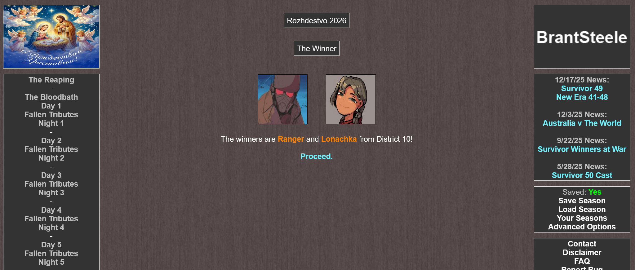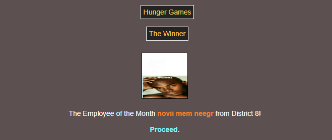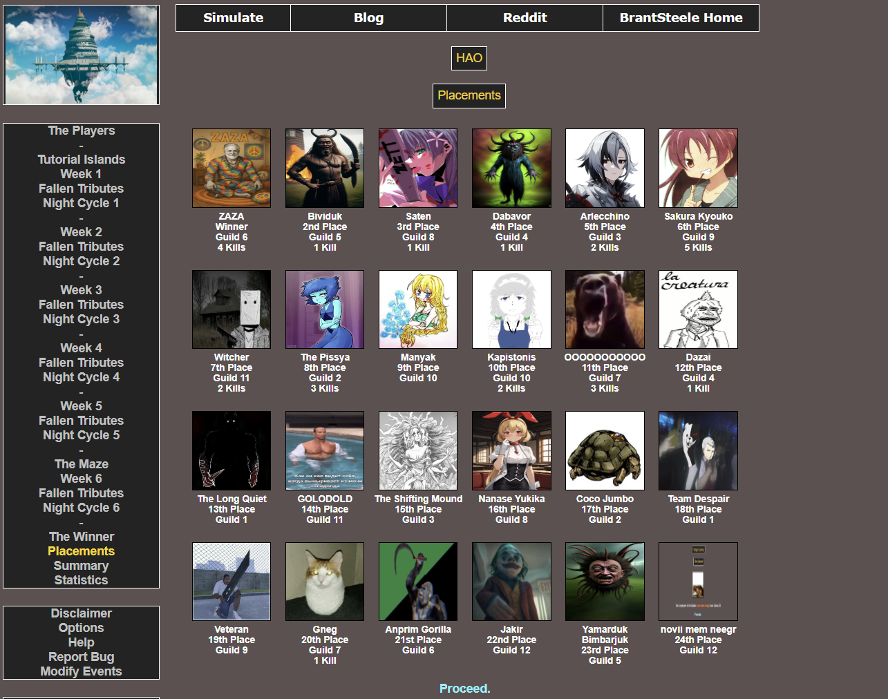 Победителем становится Заза, мои поздравления. Всем спасибо за игру, тем кто ушёл и тем кто остался. Если кто-то остался.