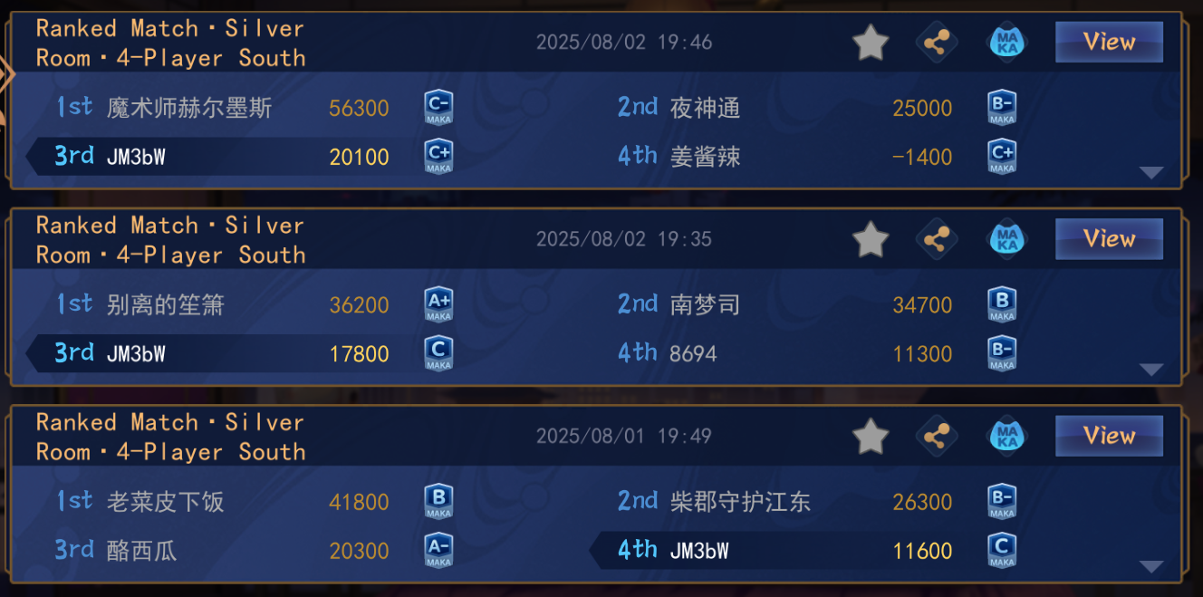 Хз, как ты мне сказал пробовать в south румах играть, какое-то время, матчей 10 примерно, получалось выигрывать, 1-2 места занимал постоянно. Или просто все раунды хорошо шло, или получалось хорошо камбекать. Но щас опять череда лузов где сплошной анлак.