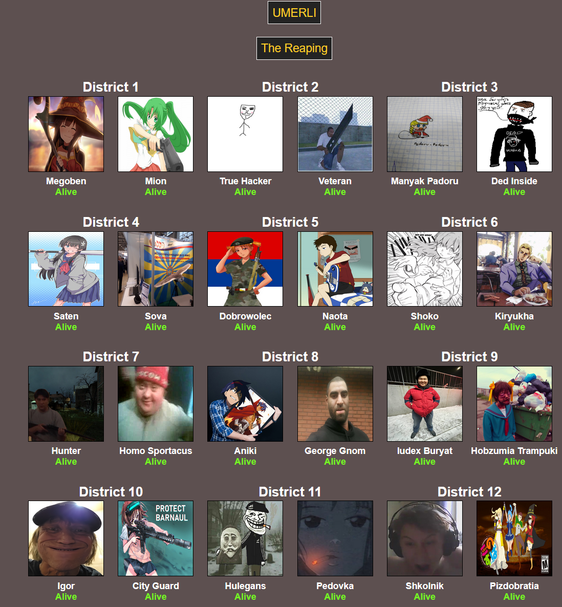 >>1601657 Вообще, конечно, странное это дело... Вот было Х человек, которые там в 2016 заинтересовались и сделали голодач. Потом ещё три года поддерживался поток людей, +- всегда поддерживающих некоторое количество голодачеров. Потом наступает 2019 год - плюс пять ньфагов, и через месяц - минус пять. И всё. Больше, сколько бы в б не хостили, ньюфагов не было. Как будто бы Боги заранее определили, сколько всего будет голодачеров, и больше определённого колличества в принципе невозможно. Ай да похуй. На новый год будет хостинг. Кое-что интересное планирую. Анонс. Ептваюмать опять новая капча