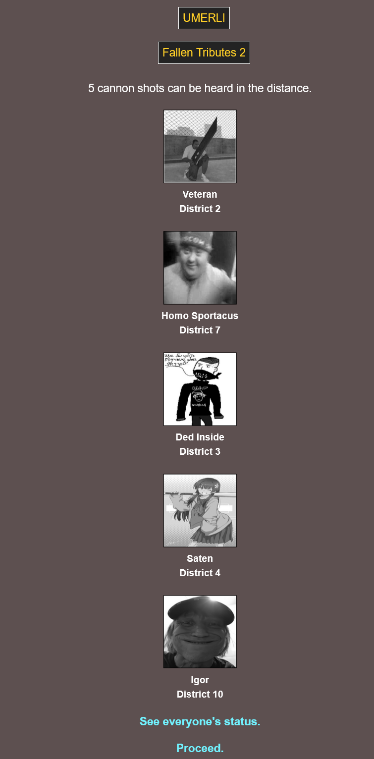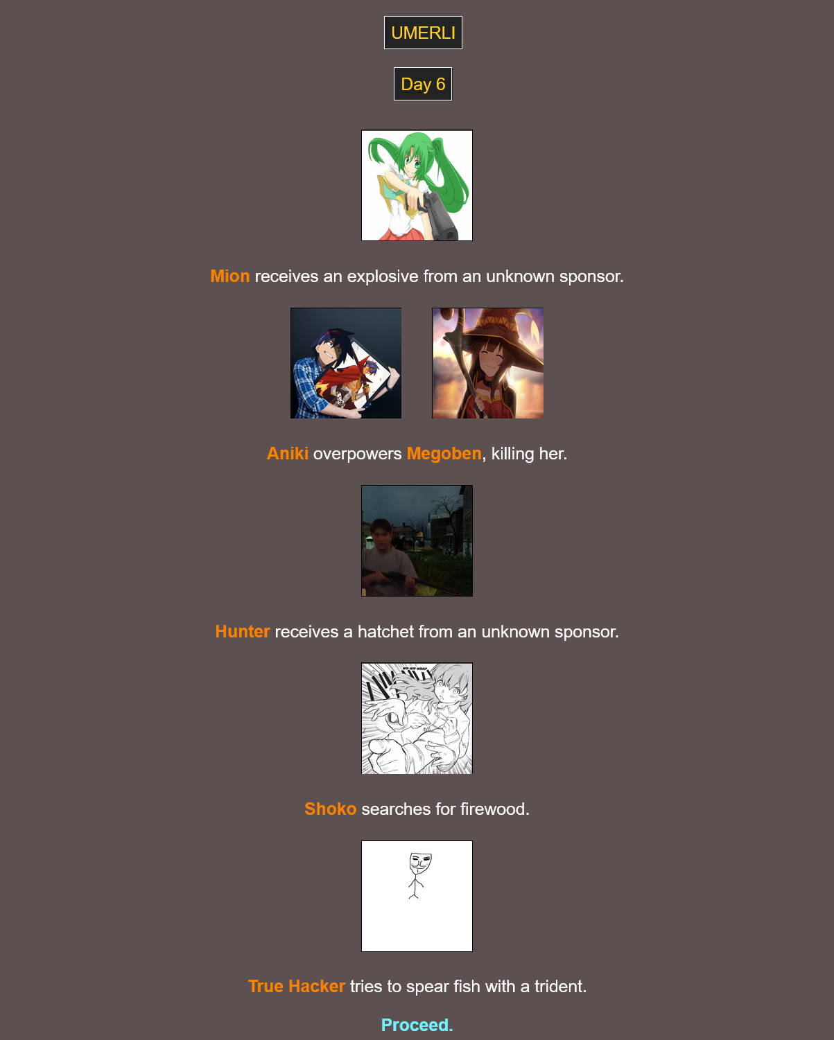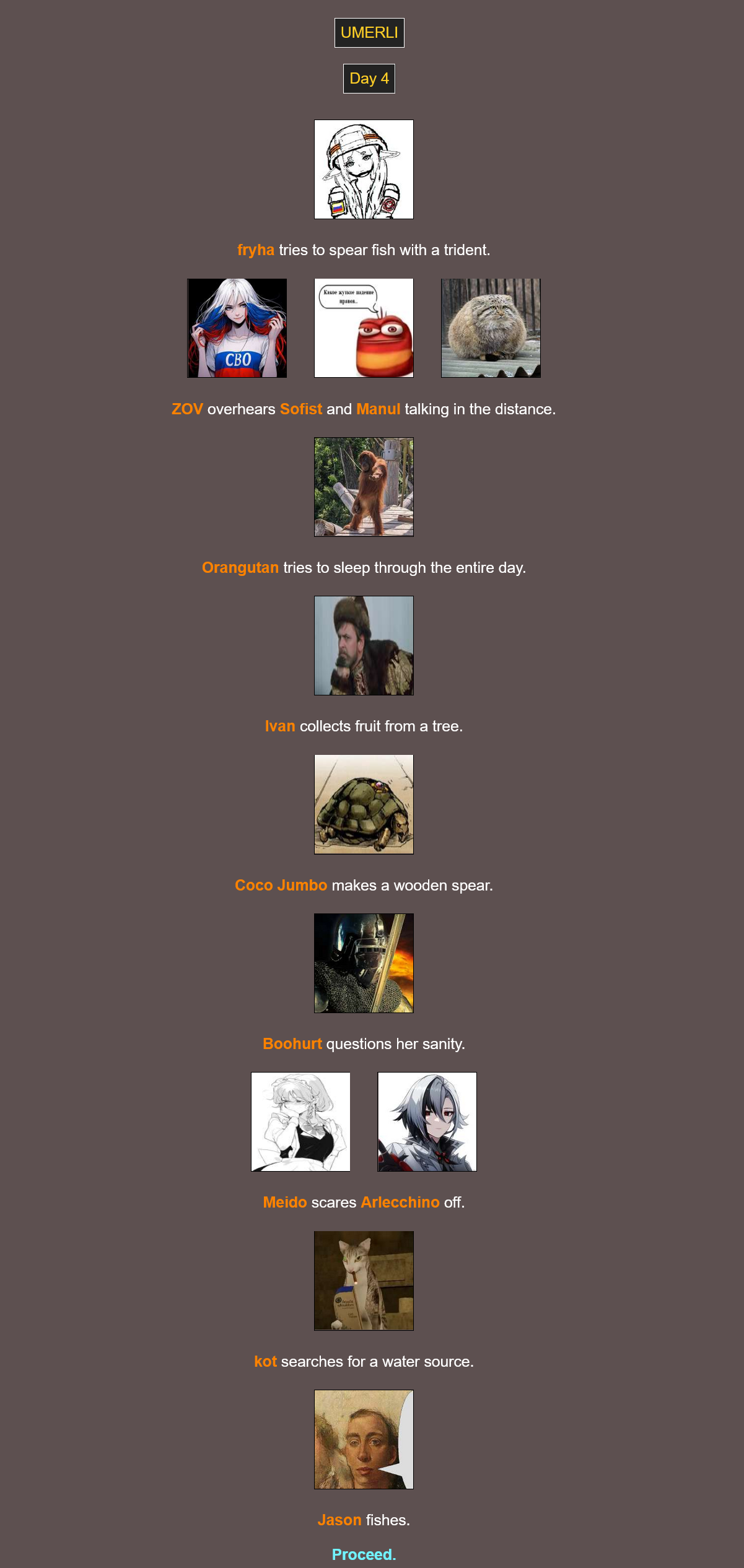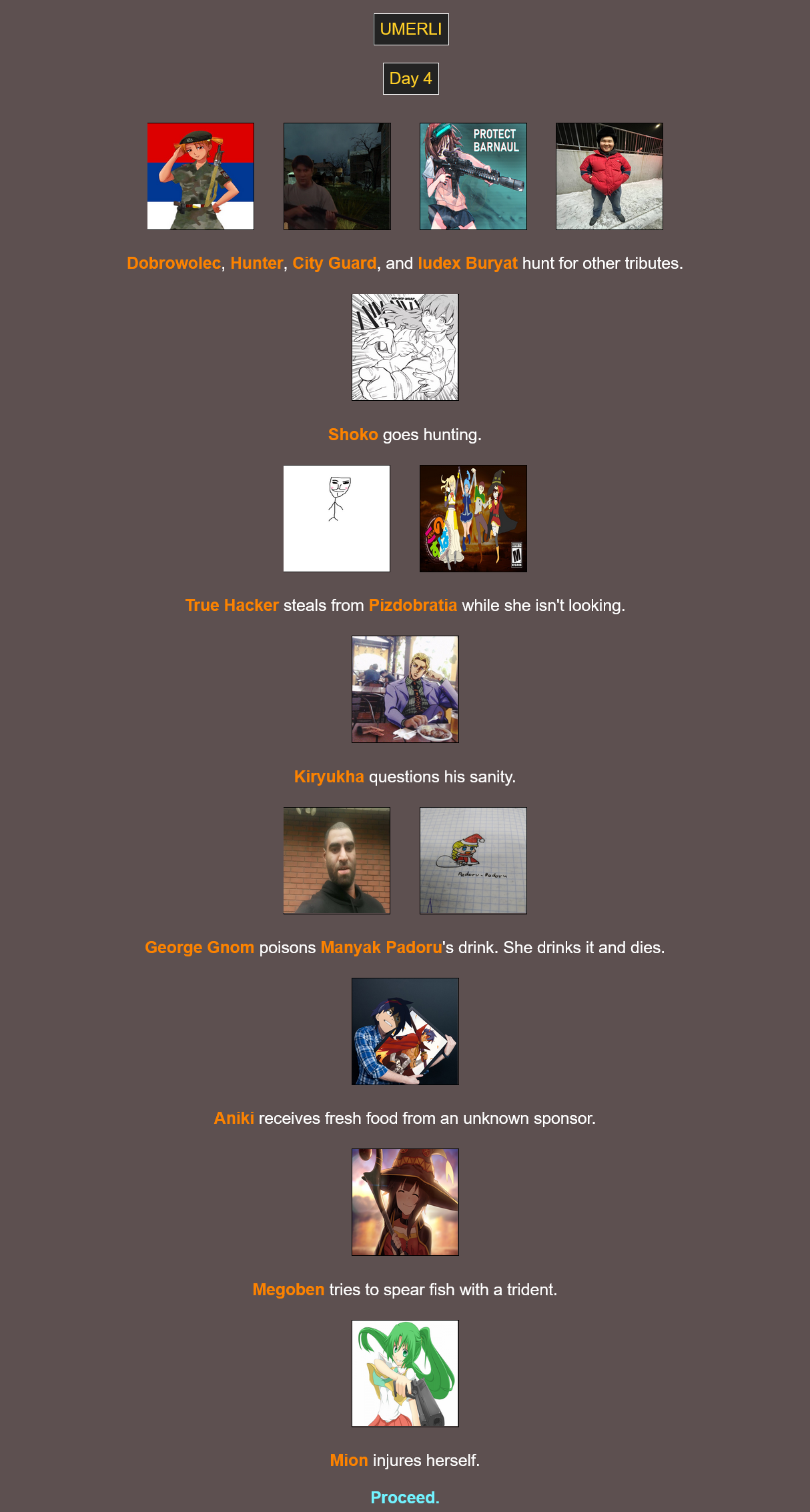 Ничего особого не происходит, кто-то у кого-то ворует, кто-то с кем-то пиздится, всё нормально, разве что Дед Инсайд свалился в яму и помер, Сатэн обронила позвоночник в трусы благодаря Мион, а Наота лишила предводителя ООСД головы.