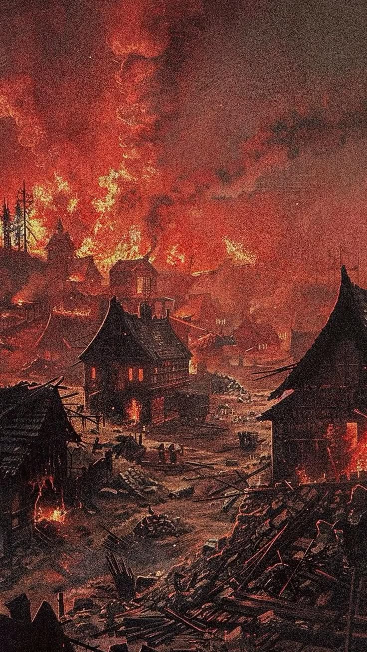 Столб дыма от десятков горящих домов поднимался в вечернее небо. Стоны и вопли умирающих заглушали треск древесины. В воздухе стоял запах гари и крови.