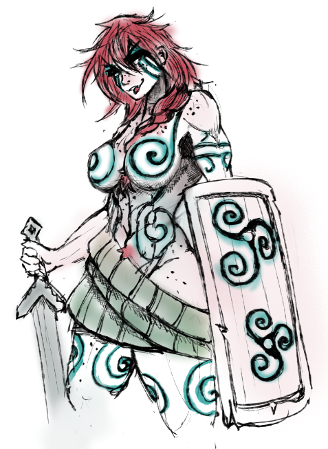 Пока Мерселио сокрушался о потерянной любви, которую, несомненно, уже никогда не обретёт, и сетовал на своё роковое несчастье, он вдруг услышал сзади тяжёлые шаги. Обернувшись, он увидел, что то была рыжая воительница, имени которой Дорин не помнил, но видел её накануне вечером в таверне. В глаза сразу бросалось малое количество одежды, которую представляла только набедренная повязка. Её несколько грубое, но несомненно привлекательное лицо было подсвечено пламенем очага, подчёркивая все его черты. Крупную мясистую грудь, покрытую множеством веснушек и шрамов девушка прикрывала рукой. Крепкие плечи, живот и ноги только дополняли общее впечатление, производимое телом воительницы. И что она забыла здесь в такой поздний час, да ещё в таком виде? Опять проклятые варвары...