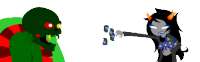 Как же я получил бого-уровень?Это было через несколько недель после начала игры. Первым в игру тогда зашёл НепетоШизик, ему в это помогал Автор Шизостака. Я сам зашёл пятым, мне в этом помогал ГамзиШизик. Он мне вообще много в чём помогал, да и я ему в чём то помогал, как ни как мойрейлы всё-таки.Как оказалось, моя планета называлась "Земля Самоцветов и Пузырей". Она была очень яркая, блестящая, даже какая-то неоновая. Прекрасные белокаменные формации, инкрустированные самоцветом самых разных форм и размеров. И в воздухе летали разноцветные пузыри с самоцветами внутри.В общем это была наверное самая красивая Земля за всю сессию. Даже враги были необычные, и тут мы заметили некоторую странность. Всё это очень напоминало мультик Вселенная Стивена. Автор Шизостака где-то откопал инфу, что изредка Сбурб может сгенерировать так называемую "Кроссоверную Землю". Вот мне попалась как-раз одна из таких. Это был кросс-овер с СЮ!!! Вот это поворот подумали мы. На моей планете были Рубиновые Импы и Кварцевые Огры (точнее было два вида Огров, Аметистовые и Яшмавидные Огры). Нет смысла сейчас всех врагов описывать.Моими консортами оказались Арбузные человечки. Они были такие милые и на их "головах" было множество пупырышек, что напоминало будто у них кудрявые волосы. Open PesterlogЭкстремальный Эстонец [ЭЭ] began pestering ГамзиШизик [ГШ]ЭЭ: Чувак!ЭЭ: АрбузныЭ СтивЭны! Это АрбузныЭ СтивЭны! бог ты мой!!!ГШ: Полегче, заебатый друже, ты о чём?ЭЭ: Я своих консортов увидЭл!ЭЭ: Они похожи на арбузов :ЭЭЭ: Они зЭлёныЭ и полосатыЭГШ: Арбузы? Странно это. А их можно есть?ЭЭ: ЭЭЭЭЭЭЭЭЭ: Это странный вопрос чувакЭЭ: Они жЭ живыЭ и разумныЭЭЭ: Но у мЭня Эсть отвЭтГШ: Да неужелиЭЭ: АгаЭЭ: Я увидЭл "труп" одного из нихЭЭ: Он с обрыва упал и разбилсяГШ: "труп"? Почему в кавычках?ЭЭ: Потому что я посмотрЭл поближЭ...ЭЭ: И сначал думал "фу там всё красноЭ, кровяка"ЭЭ: а потом смотрю - Арбуз!ЭЭ: он просто распался на дольки арбузаЭЭ: Я нЭмного побрЭзговал, но послЭ совЭта своЭго Спрайта всё жЭ рЭшился попробоватьЭЭ: На вкус как арбуз, рЭальноЭЭ: просто арбузЭЭ: ОчЭнь сочный арбуз, кстатиГШ: Так это что, можно арбузную вечеринку устраивать?ЭЭ: нЭ, чувакЭЭ: Я нЭ хочу их убивать просто чтоб арбузы пожратьЭЭ: Только Эсли ужЭ убитого найдуГШ: До сих пор не могу поверить, что ты прототипировал свой спрайт ведром. Ты заебатый извращенец, заебатый дружеЭЭ: Э!ЭЭ: Я был под напряжЭниЭм!!!ЭЭ: Я просто кинул в нЭго пЭрвоЭ что попалось под рукуГШ: Интересно тогда, почему это у тебя в комнате просто так на полу стояло ВЕДРО!ЭЭ: Я НЭ ЗНАЮ! БАТЯ ЛЭНИВЭЦ ПОЛЫ МЫЛ НАВЭРНОЭГШ: Он же спал на крышеЭЭ: Да он ужЭ нЭдЭлю полы помыть пытаЭтсяЭЭ: Но он слишком лЭнивыйЭЭ: Ну ладно, я пошёл дальшЭ исслЭдоватьГШ: Удачи дружеClose PesterlogИ я исследовал. Умилялся с Арбузных Стивенов, дрался с Рубиновыми Импами. В итоге смог и домой к себе вернуться. Салхимизировал себе тогда много чего, благо гриста, рубинов и аметистов тогда достаточно было.Из оружия конкретно сделал себе Рубиновый Огненный Топор Крика и Аметистовый Гитаротык. Так как способусами у меня были Секировидный и Гитаровидный. Да, гитаровидный, так уж получилось что у меня был способус подходящий больше для Барда, чем для Пажа.Ну в общем прошло какое-то время, мы все прокачивались, крафтили эквип, делали квесты. Особенно ГамзиШизик очень любил делать квесты. Вообще его от квестов было не от