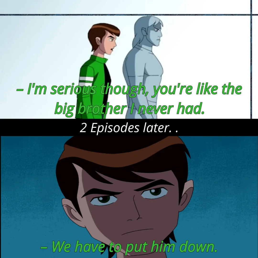 >>1279209 Как по мне, Бен - главное слабое звено своей же франшизы начиная с оригинального сериала, где он как был вредным пиздюком - так им и остался вплоть до "Секрета Омнитрикса", где чутка стал лучше. И во всех сериалах попытки ему какой-то драмы нагнать почти всегда унылыми были, тогда как на контрасте у Кевина драма была прописана хорошо.