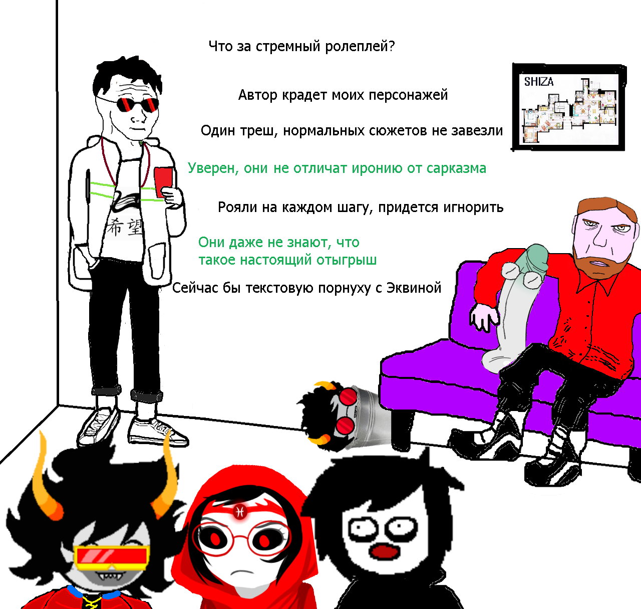>>1368229 >Попробуй смотреть на ситуацию чуть более оптимистично Зачем? Очевидно что будет кал говна. Продолжение хоумстака обосрано, оригинал хоумстака тоже скоро будет обосран (никто оригинальный гомикс не станет читать, особенно учитывая что оригинальный сайт поломан). Хайсвоп упал пузом на землю, гомосрак в квадрате тоже упал пузом на землю. Хасси поебать. Самое главное и интересное для меня это оригинальный комикс, ну и конфеты допустим, ну и разумеется эпилог. Ебать, коллайд 9 лет назад вышел. Ну допустим вот это канон. И больше ничего настолько же крутого никогда не будет, от этого печальнее всего. У нас больше никогда не будет настолько гениального произведения как хоумстак. Поэтому меня не особо волнует судьба фандома.