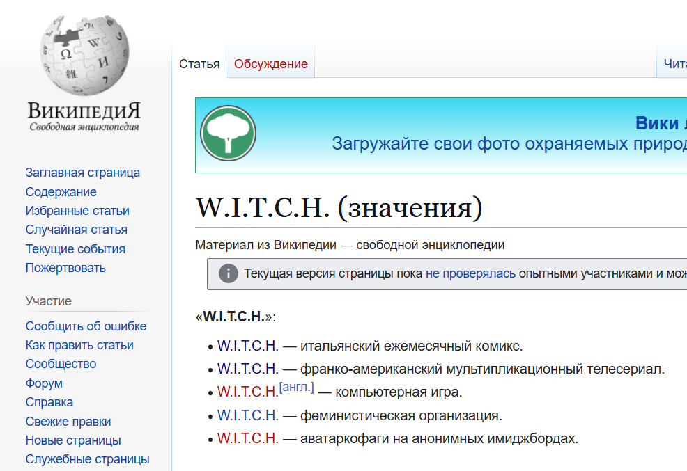 W.I.T.C.H. - итальянский ежемесячный комикс в жанре фэнтези, написанный и иллюстрированный Элизабетт Гноун. Название W.I.T.C.H. — это аббревиатура от английских имён девочек: Will, Irma, Taranee, Cornelia и Hay Lin. В комиксе рассказывается о пяти девочках-подростках, каждая из которых обладает волшебной силой — может повелевать определённой стихией. Они являются Стражницами Завесы, которая разделяет миры и препятствует проникновению зла из одного в другой.