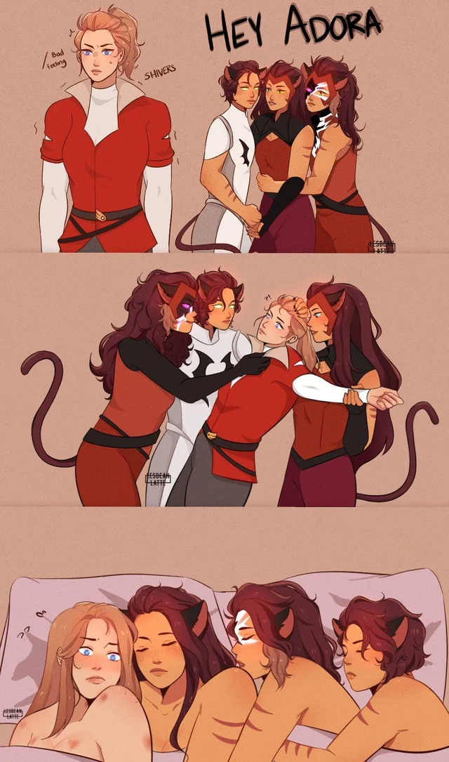 Я думаю, просто подмышки - одно из наиболее шерстистых мест у неё второе после лобка, лул. Ну или она может по-кошачьи вылизывать Адору себя и отрыгивать комки шерсти.