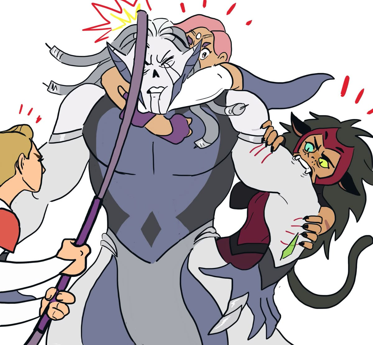Новые времена диктуют новые правила, поэтому современная анимация весьма минималистична, никаких лишних элементов, чтобы планшетные смузихлёбы не дай бог, не употели отрисовывать лишнее. И если присмотреться, то большинство героев тоже довольно одинаковые на ебало, потому что прорисовки нет. Только дизайн жопы Катры выигрывает, ну мож Хордак ещё. Но старый с голосом Полонского мне нравился больше, он дохуя рокнрольщик. Не такой мемный как Скелетор (наверное, потому что появлялся реже, всю работу в основном аутсорся подсосам), но каждое появление запоминалось.