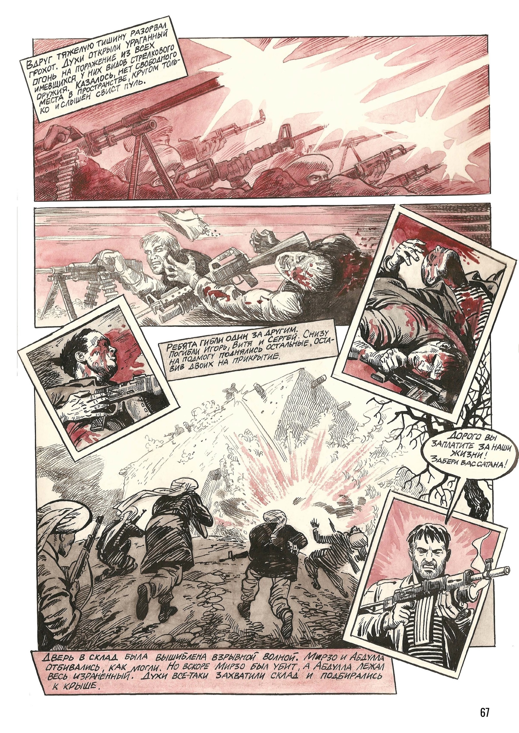 >«Красная кровь» — единственный в России комикс на тему Афганской войны 1979-1989 годов. Сюжет основан на воспоминаниях ветерана боевых действий Игоря Ермакова и его сослуживцев. Это история героя, воплощающего в себе лучшие черты человека, считающего, что он воюет за правое дело.