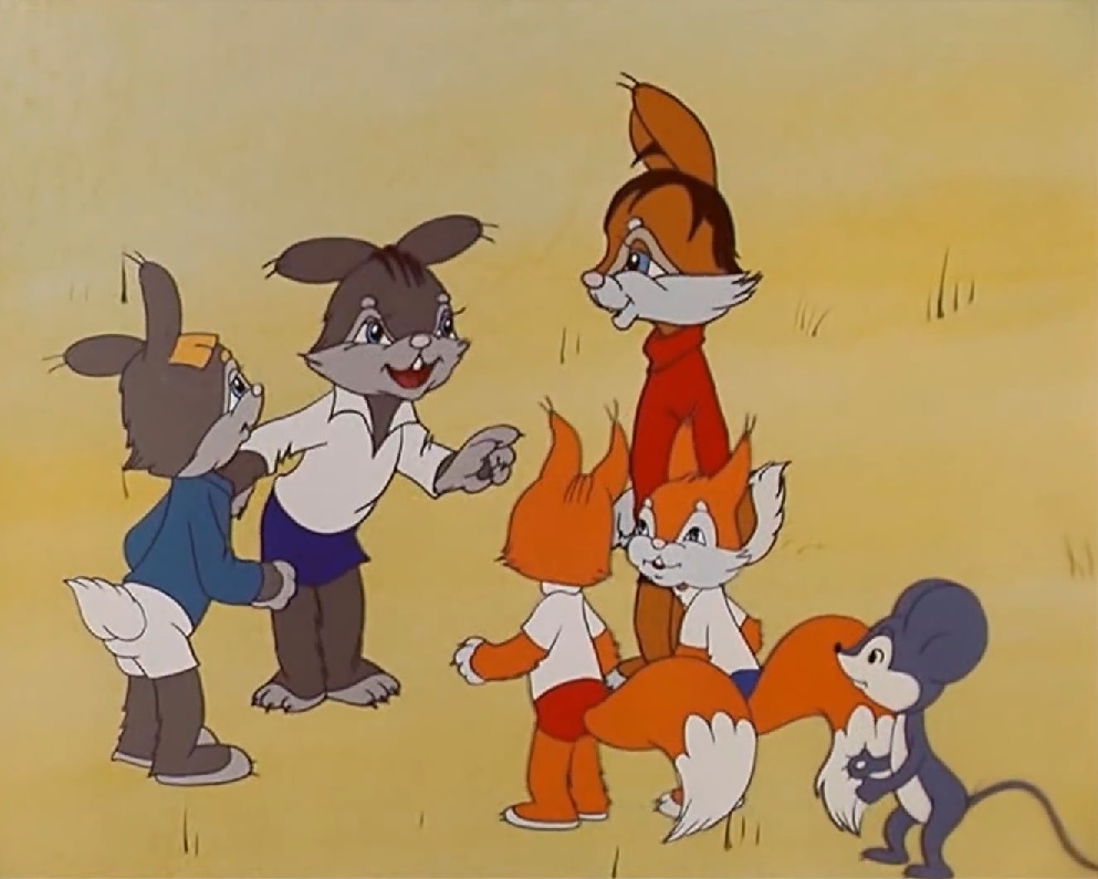 1) Пустомеля, 1980 год. Главный герой очень любит помечтать, пока остальные зайки вовсю вкалывают в колхозе за трудодни. Эта его черта очень раздражает привыкших к коллективизму друзей. Мечтатель оказывается неблагонадёжным элеметом и изгоем, уходит в пустоши. К счастью, партийный номенклатурщик на пенсии Ёж подсказывает, что и от интеллектуального труда бывает польза, главное официально трудоустроиться, а не как Бродский, в каморке писать стихи. Так наш Зая становится новатором, изобретая водную мельницу для полива овощей с грядок. Таким образом, главгерой наконец получает столь желанное социальное одобрение и приглашение вступить в комсомол. Забавно, что для работы мельницы наш маленький большевик всё же использует чужой труд, а именно бельчаток. Если серьёзно, то мульт очень милый для нас, скуфов, в нём много шладеньких заек, с которыми так и хочется съездить на небезызвестный островок в Тихом Океане.