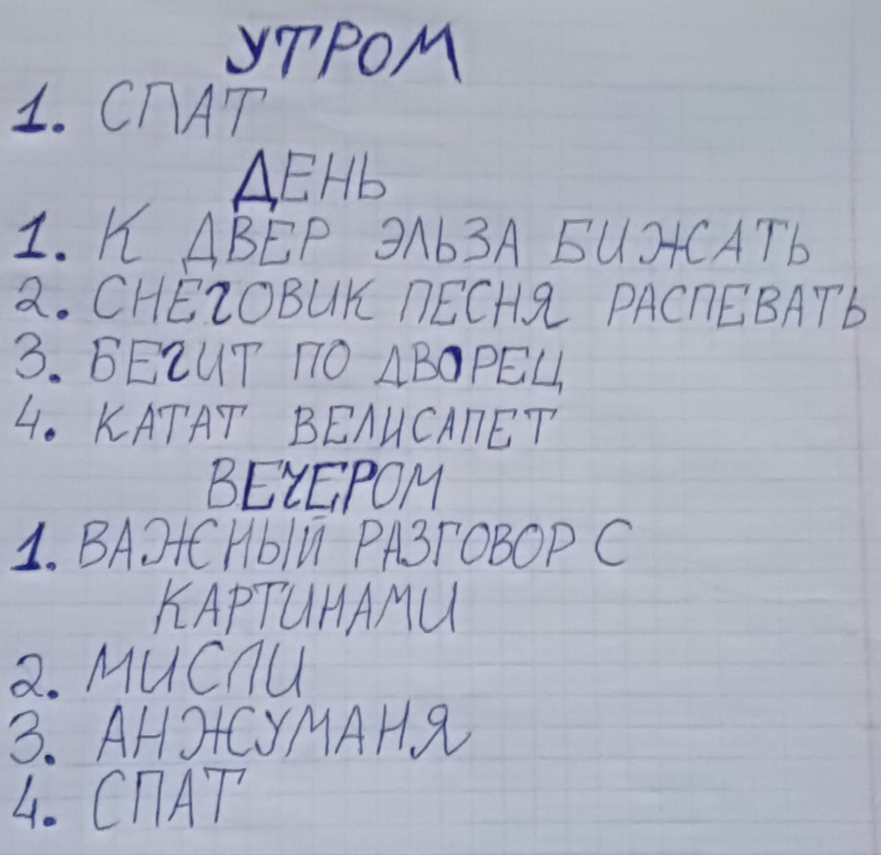 9. ЗИМОЮ БЫЛО МИНУС 195,8 А ВСЕМ НАСРАТЬ БЫЛО. КТО ЗАМЁРЗНЕТ - ЭЛЬЗА ПОЦЕЛУЕТ В ГУБЫ И ВСЕ. РУМЯНЫЕ ХОДИЛИ В ШАХМАТЫ НА УЛИЦЕ ИГРАЛИ