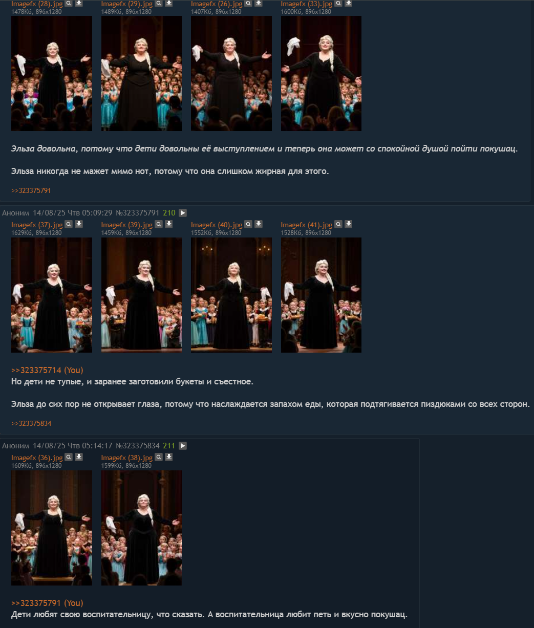 >>1325858 > Так, а перечисли их пожалуйста. Из анимации последнее мной просмотренное - это Дроны-Убийцы и Адский Босс. Из игр последнее пройденное - BG3. Жду твоих пояснений о том, какой же я лютый говноед. > Тебя прямо действительно так сильно это зедело? Опять же, мне пофиг на чужое мнение. Но мне не пофиг, когда кто-то с важным видом пытается обвинить других в страшных прегрешениях, когда у самого за душой грешки водятся. > Лол! Вот сейчас не понял вообще. Забавно, что ты триггернулся на это слово. Возможно, для тебя это прозвучит оскорбительно, но со стороны ваш чатик по интересам именно так и выглядит. Ни в коем случае не осуждаю, просто констатирую. > Может конечно, но тут всё-таки в основном оформляются завсегдатаи. Я и есть завсегдатай, как писал в предыдущем посте. Вахтёрство меня ничуть не пугает. > а ты оказывается просто познакомится с ним хочешь Знаком с ним подольше, чем некоторые "завсегдатаи". Впрочем, не вижу в этом какого-либо повода для гордости.