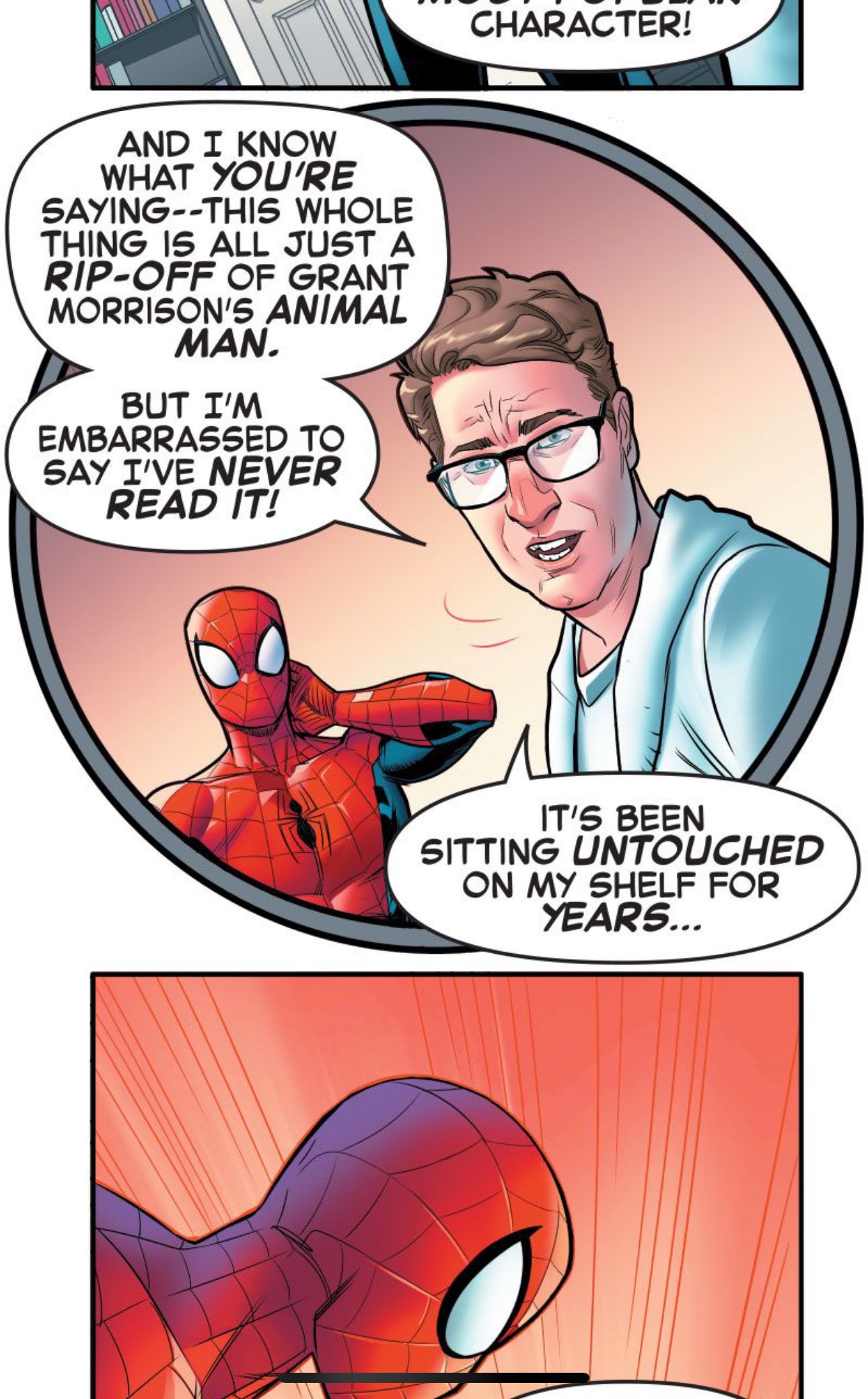 >>1367486 Паркер, после очередной тяжелой битвы, в которой он кое как победил, и очередного разрыва с Эмджей, идет к психотерапевту поныть за свою жизнь и подучить поддержку, а психотерапевт, современная фемка, начинает его попрекать в том, что это он сам во всех своих бедах виноват, что он нехороший человек, и поэтому у него не ладится с Мери Джейн. А еще он сексист, мизогонист, расист, фашист и т д., ведь он белый парень в Нью-Йорке. На следующий день во всех новостях: