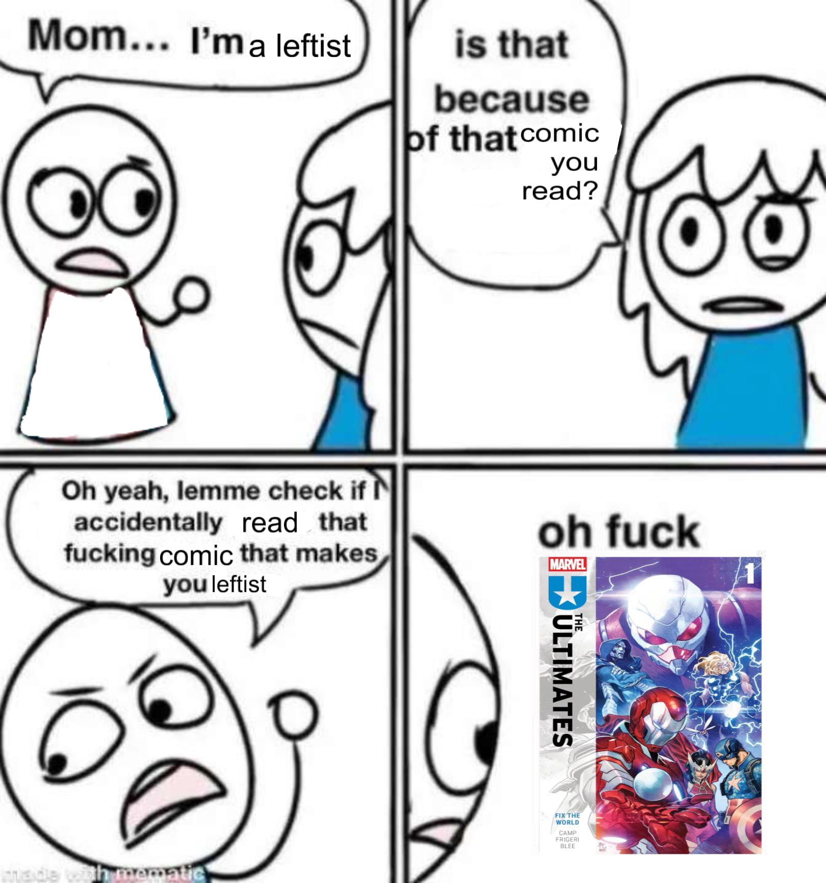 >>1365615 Да. Вместо нормальной самостоятельной вселенной для молодых читателей (какой была первая алтима) сделали ебучий фанатский фанфик из разрядов высеров "What If...?" Ну и закономерно, что это говно никто покупать не хочет.