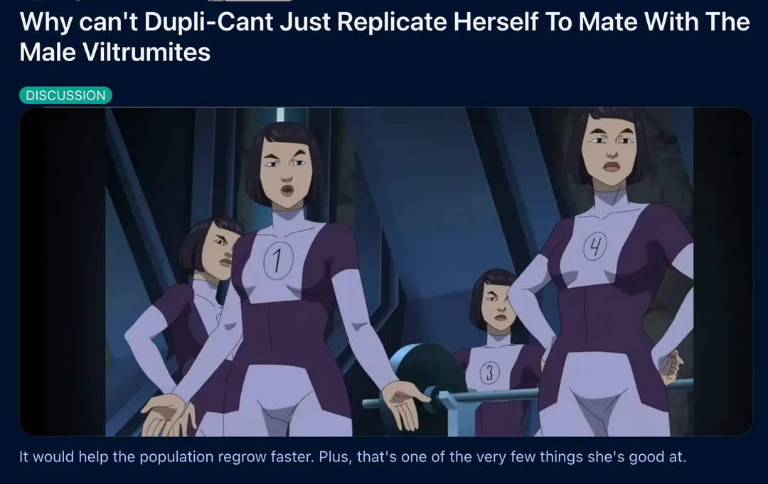>>1361374 >С той хуйни что Вилтрумиты друг друга до такой степени переебашили что их осталось лишь 50 человек я вообще проорал. Более тупой группы злодеев я еще не видел.