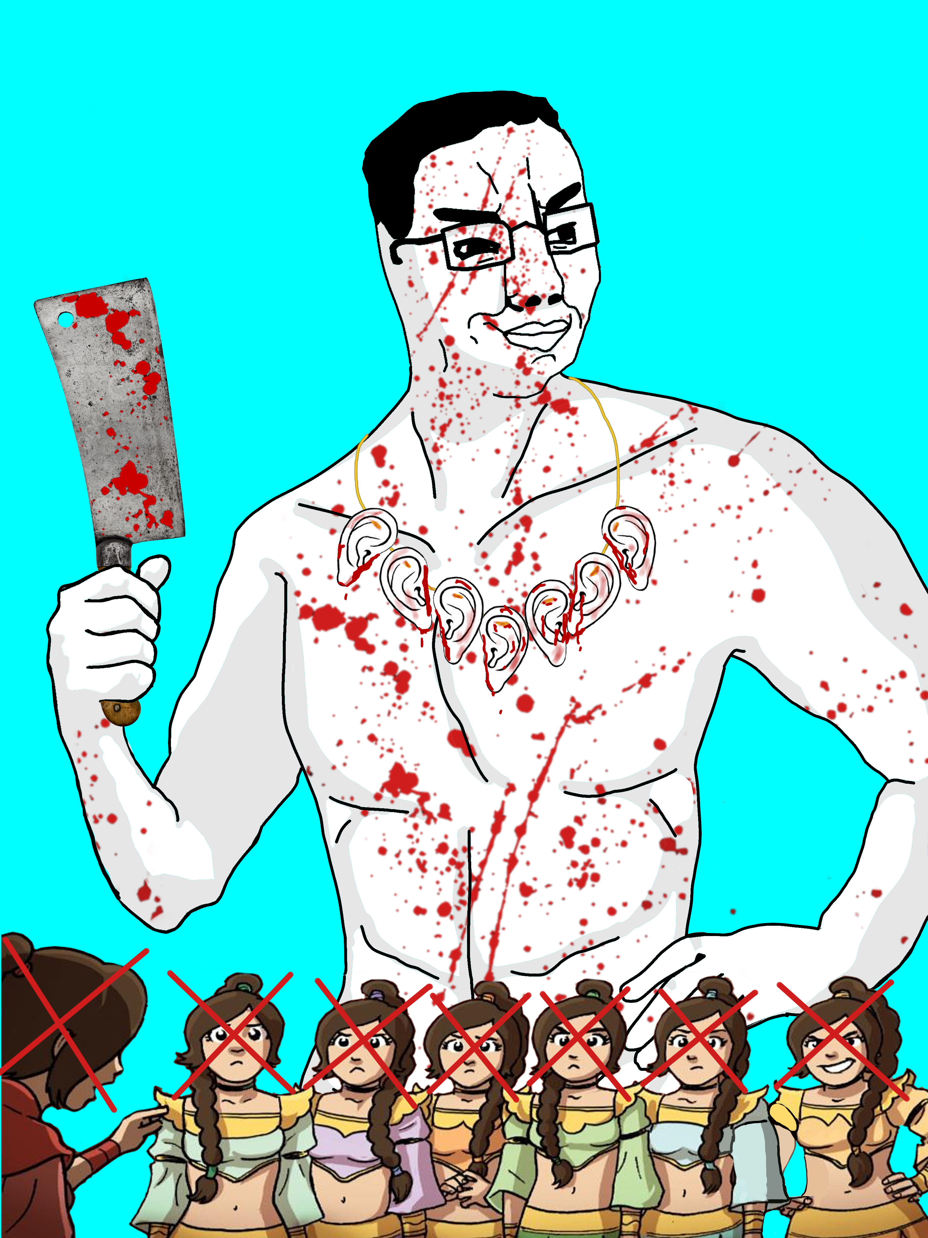 У меня вечный вопрос, почему всякие Озаи, Эмгыры, Денеторы, Тайвины Ланнистеры и те же Аанги были моногамными. В чем бля смысл? У них у всех цели, которые требуют большого количества наследников и приемников. Но не, бля. У Аанга должен был быть в каждом народе гарем, куда бы свозили девок независимо от их воли "Во имя Баланса и равновесия," а кто против - тот враг и шпион народа огня