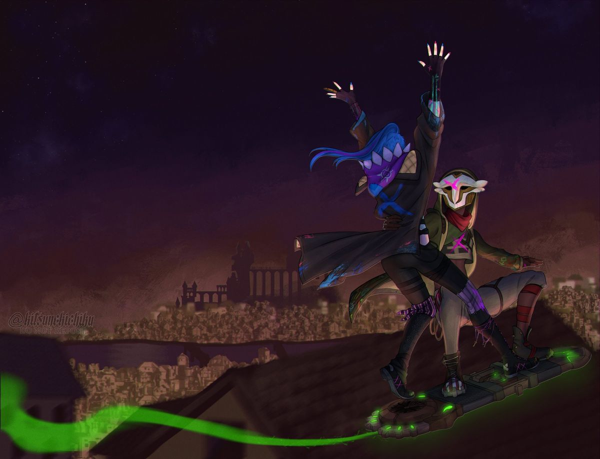 Там одна из художниц выложила неиспользованные концепт арты. На трёх артах Джинкс и Экко танцуют вместе в нижнем белье. Судя по всему это были концепты для опенинга.