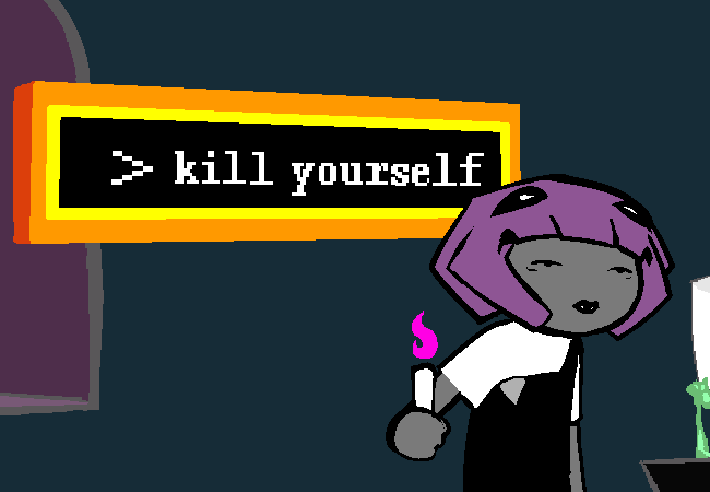 >>1374675 там была картинка из граффити тогда ещё существовавшей в вк опции рисунков. там была кривая кринглфак-арт каракуля с двуями троллями мне кажется там были эридан и вриска, сидящие у подоконника обычного подъезда и кто-то из них говорит "ебаный 2007"