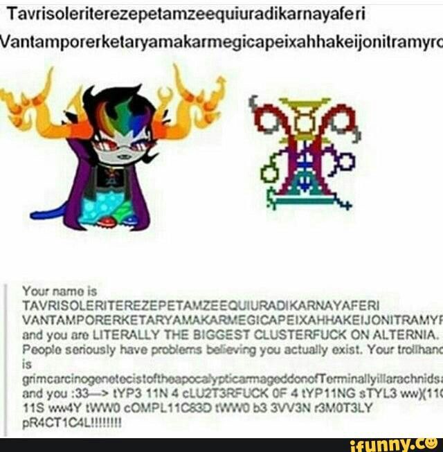 >>1373962 И чё это за хуйня? В пространстве парадоксов Каркат и Канкри взаимные предки. Значит, в Пост-царапинной вселенной Канкри в роли Страдателя предок Карката, а в Пре-царапинной вселенной предком Канкри должен быть Каркат в какой бы то ни было итерации. И у Карката, и у Канкри по-человечески красная кровь - так уж получилось у Карката в эксперименте в лаборатории. С хуёв каких тут у нас лаймокровый взялся и с хуёв у него уже симовол 69, если Страдателя на Бефорусе не было?