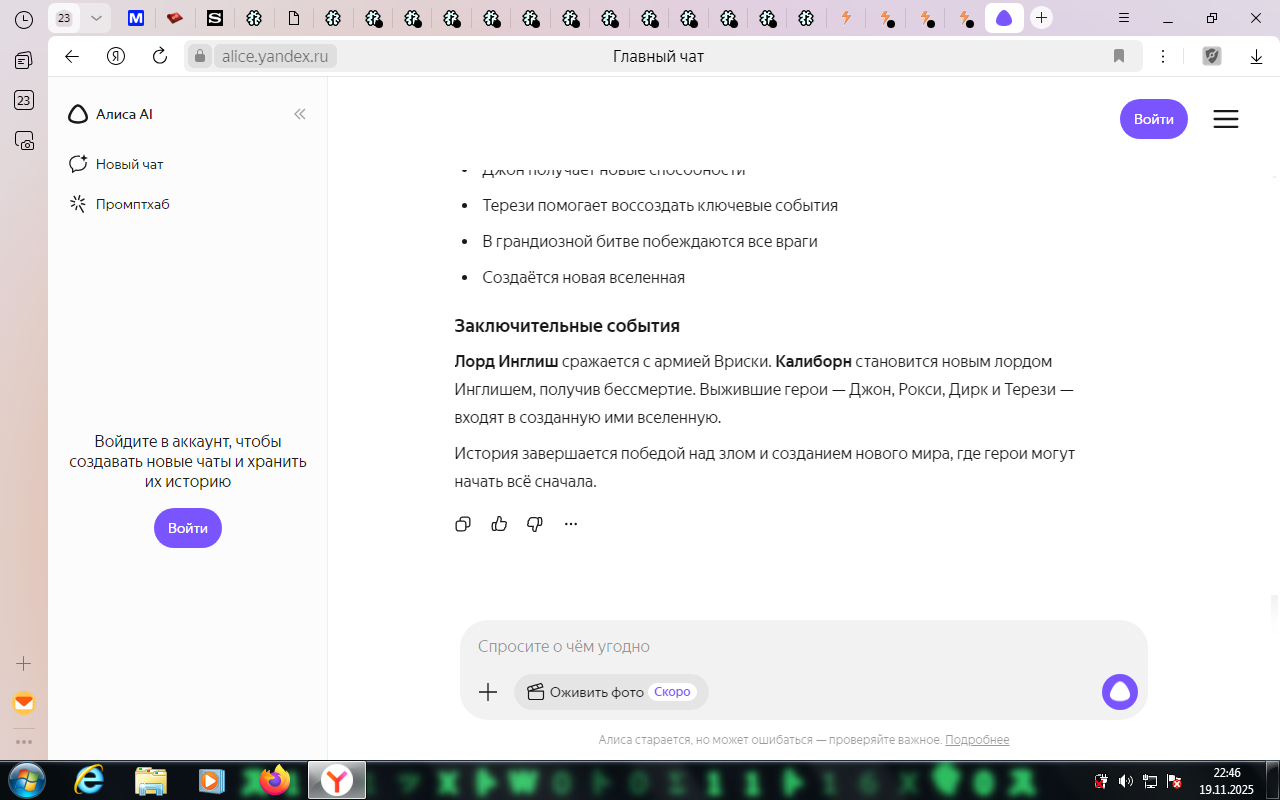 >>1376561 >>1376564 >>1376565 >>1376569 Сука блять нахуй теперь только ии в треде обсуждает комикс!!! Дожили блять!!! А ведь с ИИ можно ролёвки устраивать. ГД сейчас во всю погружается в текстовую порнуху, вот куда он запропостился. Нужно посты ГД собрать и запрогать ИИ, чтобы у нас в треде был такой вот друже-бот.