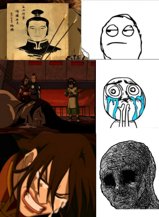 @ Азула убивает скинхеда @ Зуколд ноет про своë достоинство и про то что папенька его не примет @ Зуколд скрывает сценарный хуй рояль в кустах, пиздит что скинхед отбросил копыта с концами @ Азула отдаëт лавры нытику, чтобы тот наконец то угомонился и перестал заливать своими слезами весь двор @ Сосай хвалит Зуколда за победу над Калотаром и восстанавливает его в правах, ровно то что этот еблан весь сериал и добивался @ Зуколд прочухивает, что таким макаром в случае выживания скина его словят на пиздеже @ Нытик с визгом влетает в спальню сестры ночью и устраивать истерику на почве того его бедного видите ли злобно подставили @ Азула говорит, что если ты мне правду говорил, то вытри сопли и сиди кайфуй, а если наебал то это уже твои проблемы @ Ряяя Азула всегда врëт!!!1 Подставила, обманула в рожу плюнула!! Пойду дядюшке чмайро под юбку поплачусь как меня опять мир не понял!!