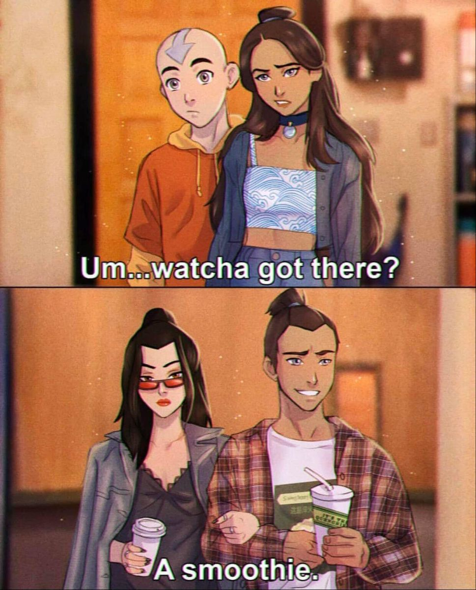 >>1372091 Всегда кекал с этого момента из-за того, что Сокка и Катара смуглые, а их, якобы сын, Аанг нет, и никого это не волнует в школе. Или это норма у Народа Огня?