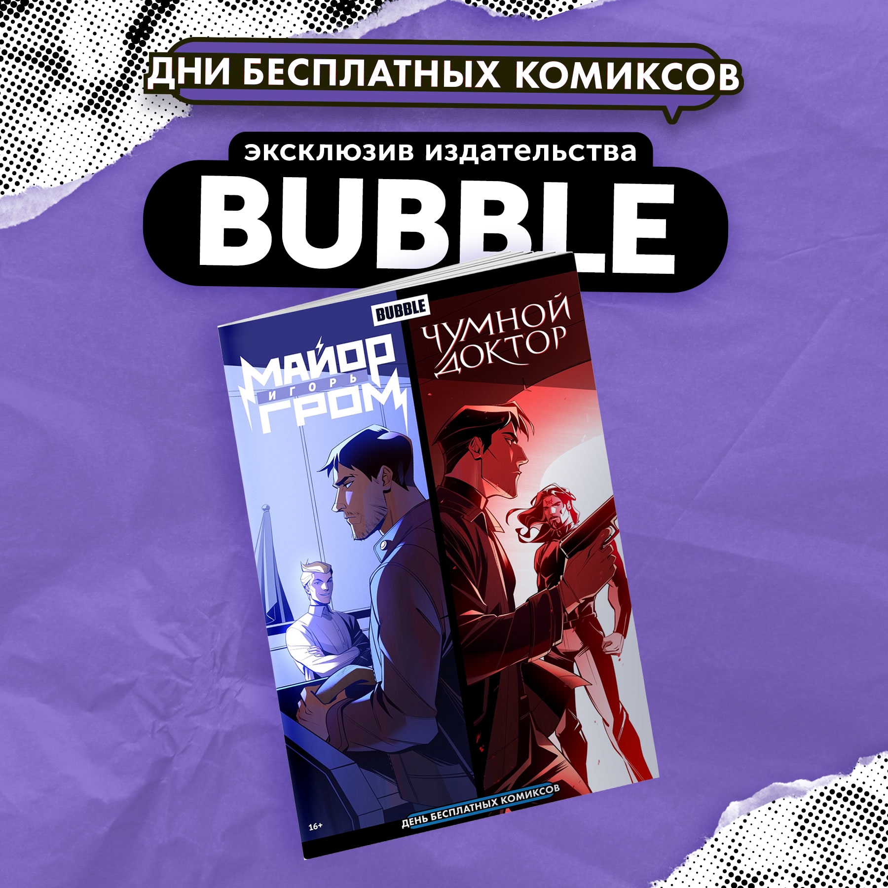 Специально в честь «Дня Бесплатных Комиксов» издательство приготовило спецвыпуск с совершенно новыми страницами, позволяющими заглянуть в будущие сюжеты двух любимейших читателями серий - «Майор Игорь Гром» и «Чумной Доктор»!