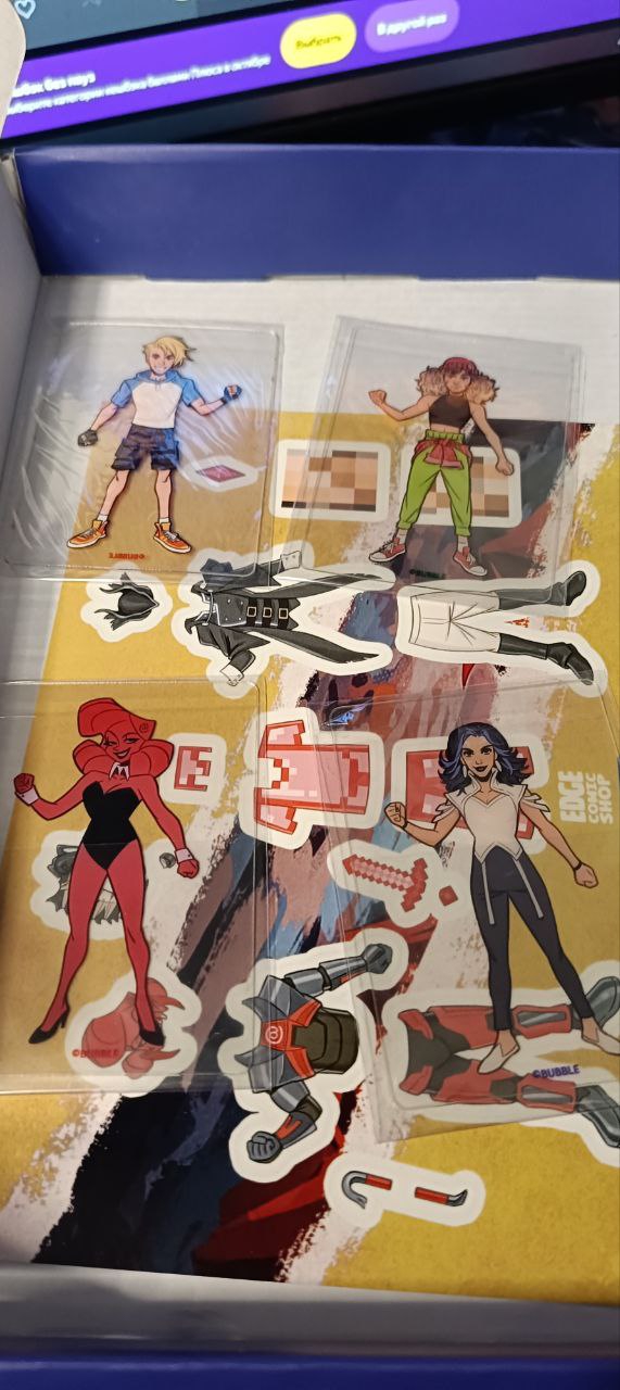 Честно, ожидал большего, обложка не такая уж и вау, пин Полиматери непонятно куда крепить из-за его размеров, и вот эти наборы для одевания... как будто я девочка лет 12ти, лол. Есть пара прикольных открыток, но они у меня просто копятся в ящике, кто-то реально всё ещё отправляет открытки? хз почему Edjes пихает открытки во все дыры