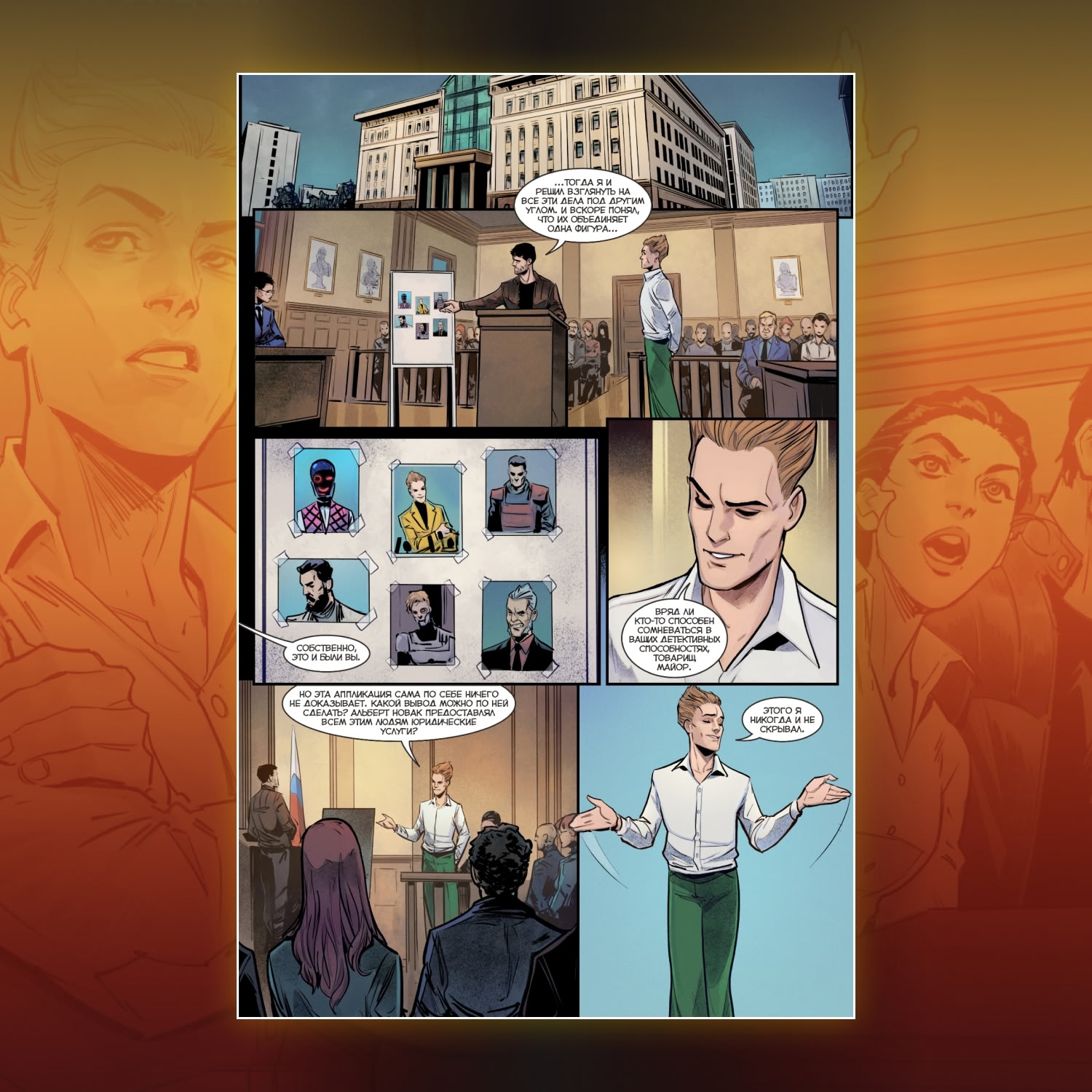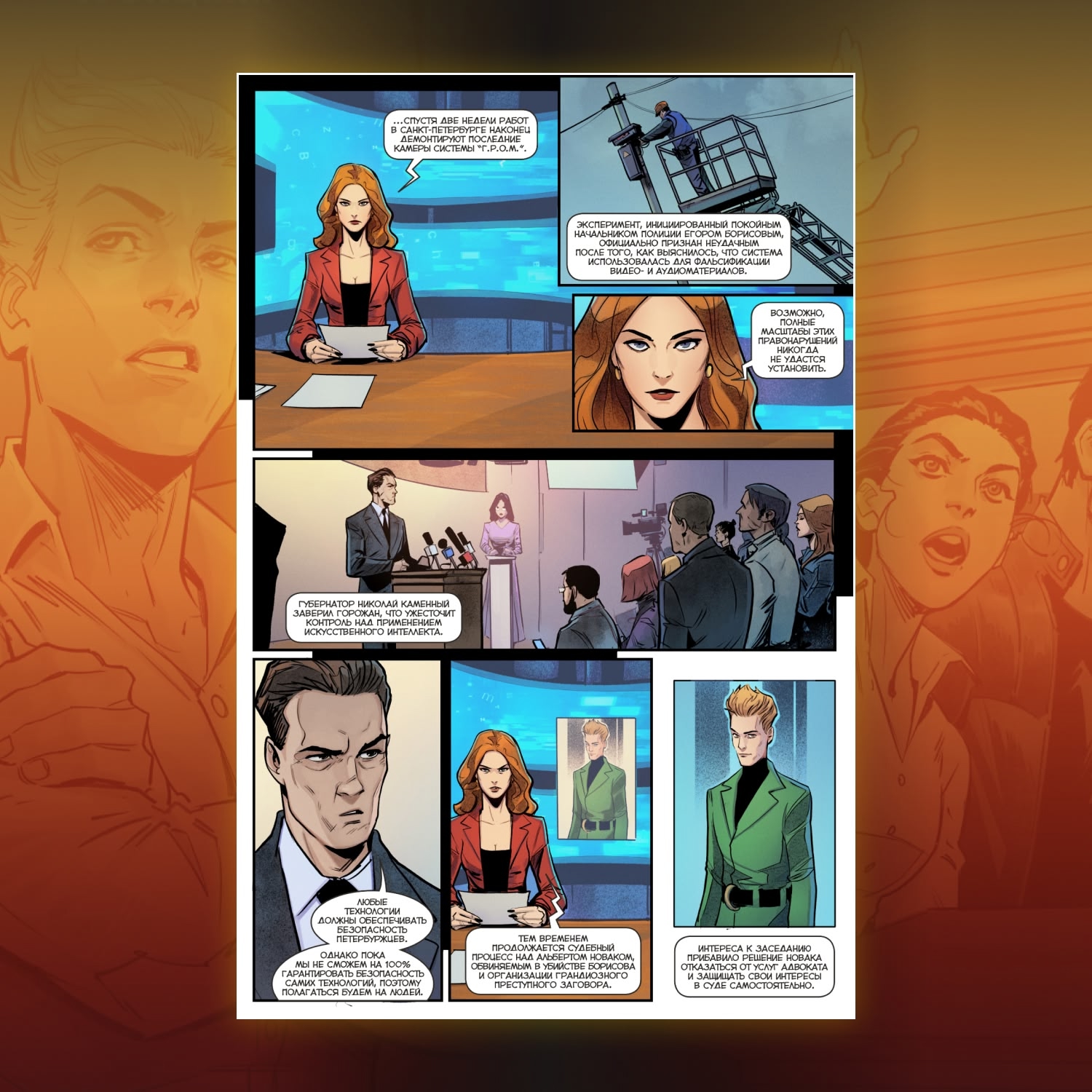 В одной из историй Игорь Гром окажется в суде, вынужденный противостоять хитроумному манипулятору Альберту Новаку, а в другой мы узнаем, что же всё-таки случилось с Олегом Волковым после событий сюжета «Дом» и как появилась загадочная организация «Око»… И всё это под уникальной обложкой от Айши Исса!