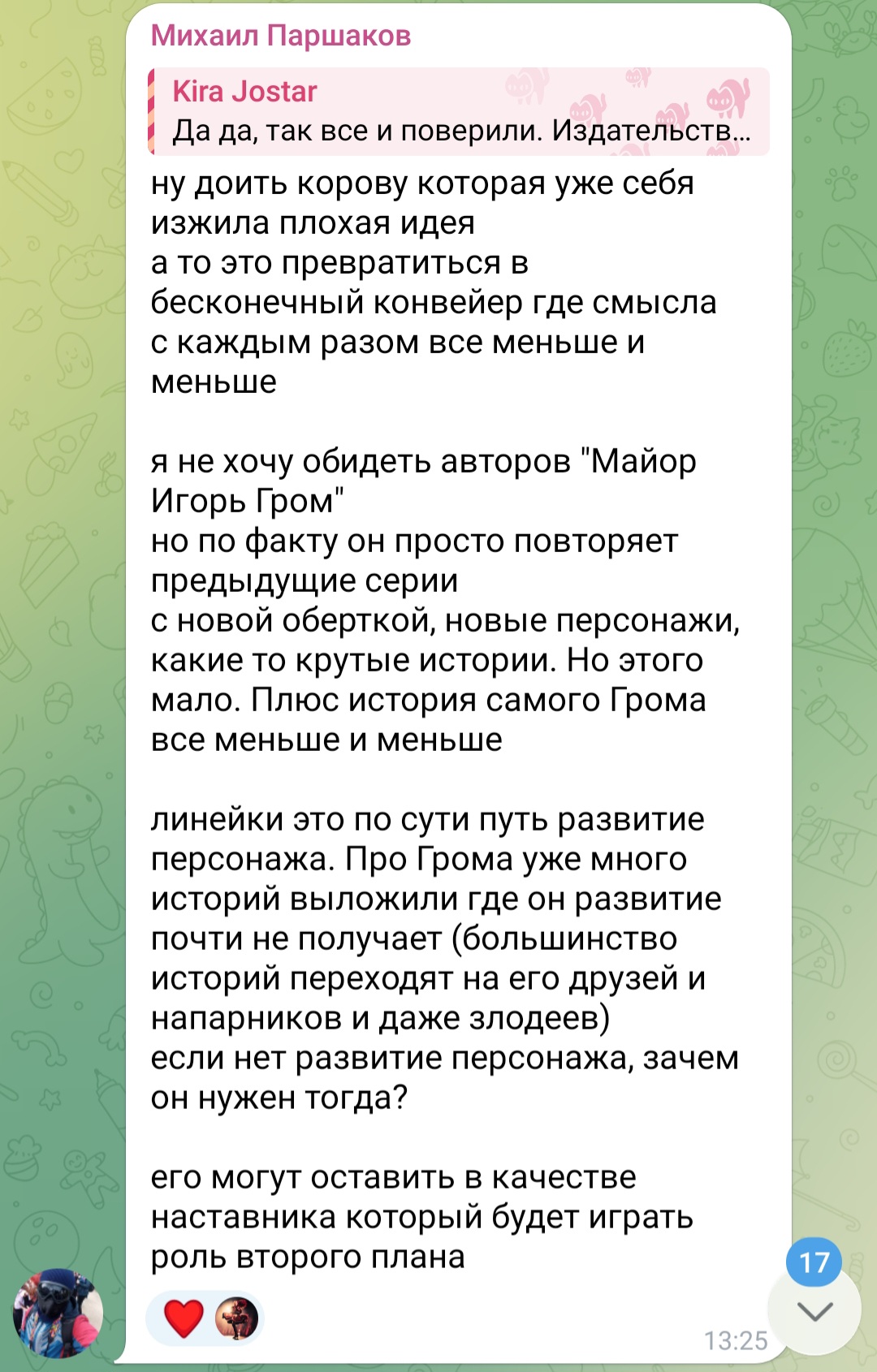 Почитал коменты. А что Рысь не очень идет? Кто читает как впечатленяя о серии? И что это за бунт против фобс (пик 3) неужели она комуто из фанаток баббл не нравится? Ну и мнение про Грома которое мне понравилось.