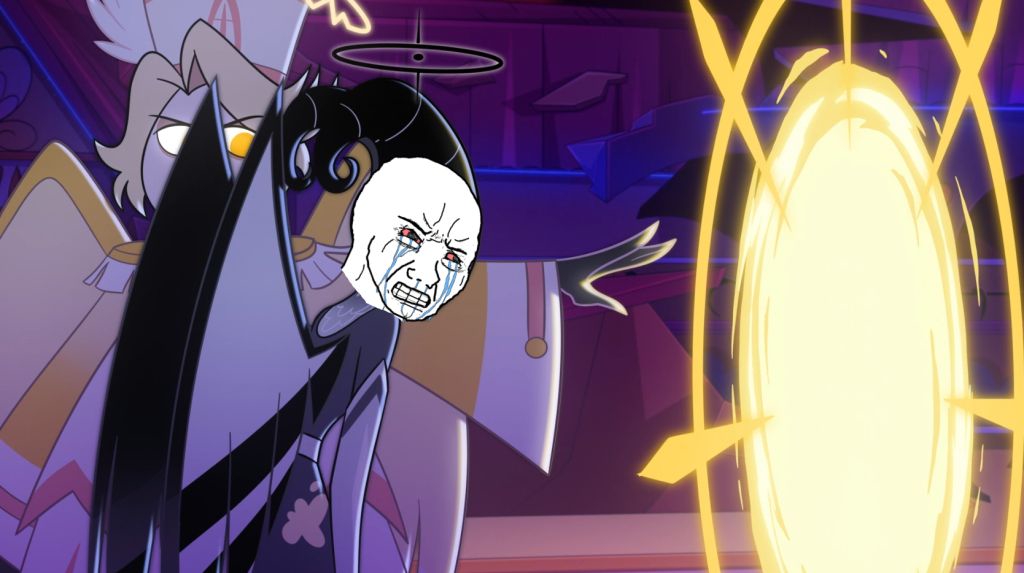 Отдаю должное Визижопе ,она возвысила Вокса и опустила Люцифера с Аластором Для того чтобы Аластор в конце обосал Вокса,а Люциферу анулировать наказание от бога