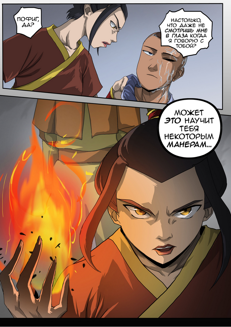 Почему в комиксах Азула не сбегает из психушки используя свои скилы планирования и манипуляции? Они просто выпускают просто потому что, она сбегает и усё. Если даже ленивая свинья Айро раскачался при помощи манной кашки и анжуманий и разъебал тюрячку, Азула-то бы уж точно нашла способ выкрутиться, как она это умеет и всегда делала. Но её зачем-то сделали тупой. И вдобавок смешали два сюжета - 1) побег 2) поиск Урсы, хотя ничто не мешало раскрыть их полноценно.