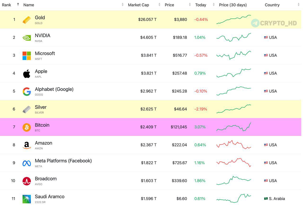 ⚡️ Биткоин обогнал компанию Amazon по рыночной капитализации. И если вы нимательно посмотрите на таблицу, то поймёте, в чём конкретно большие дяди держат свои запасы награбленного.