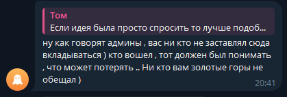 Покидаю вам самое смешное из чата телеги. Возможно это поможет будущим поколения более бережно относиться к своим инвестициям. Потому что есть только биткоин и может ещё монеро