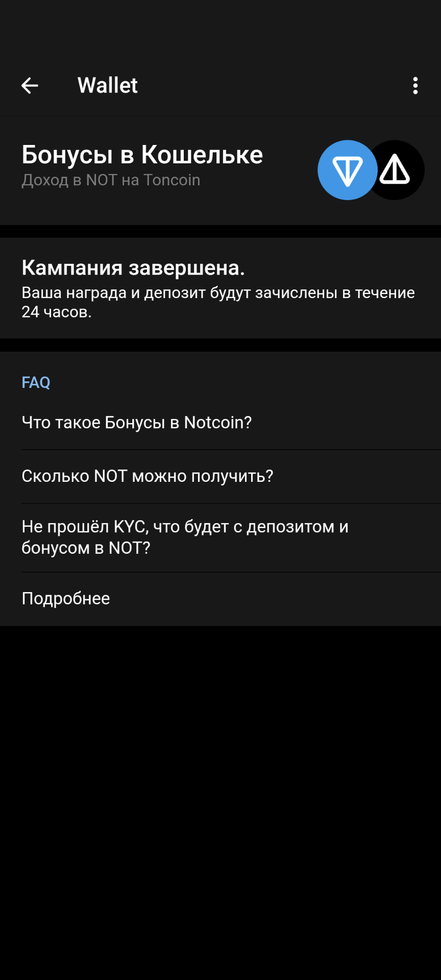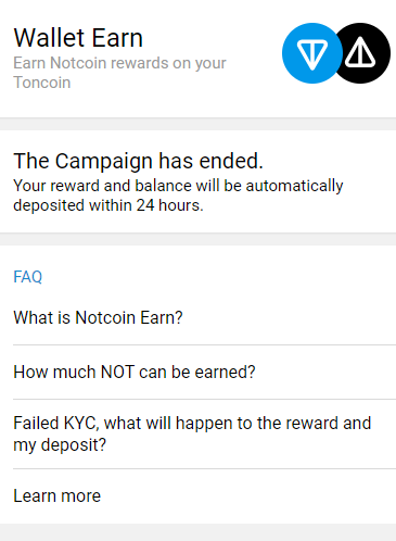 Единственное, я не знаю это баг или я что-то упустил. Тот стейкинг был продлён на неделю и заканчивался 1-го числа. 2-го я закрыл его через "Close Wallet Earn & Withdraw". ТОНы вернулись, а вон НОТы нет. Написал в бот поддержки, но они второй день молчат.