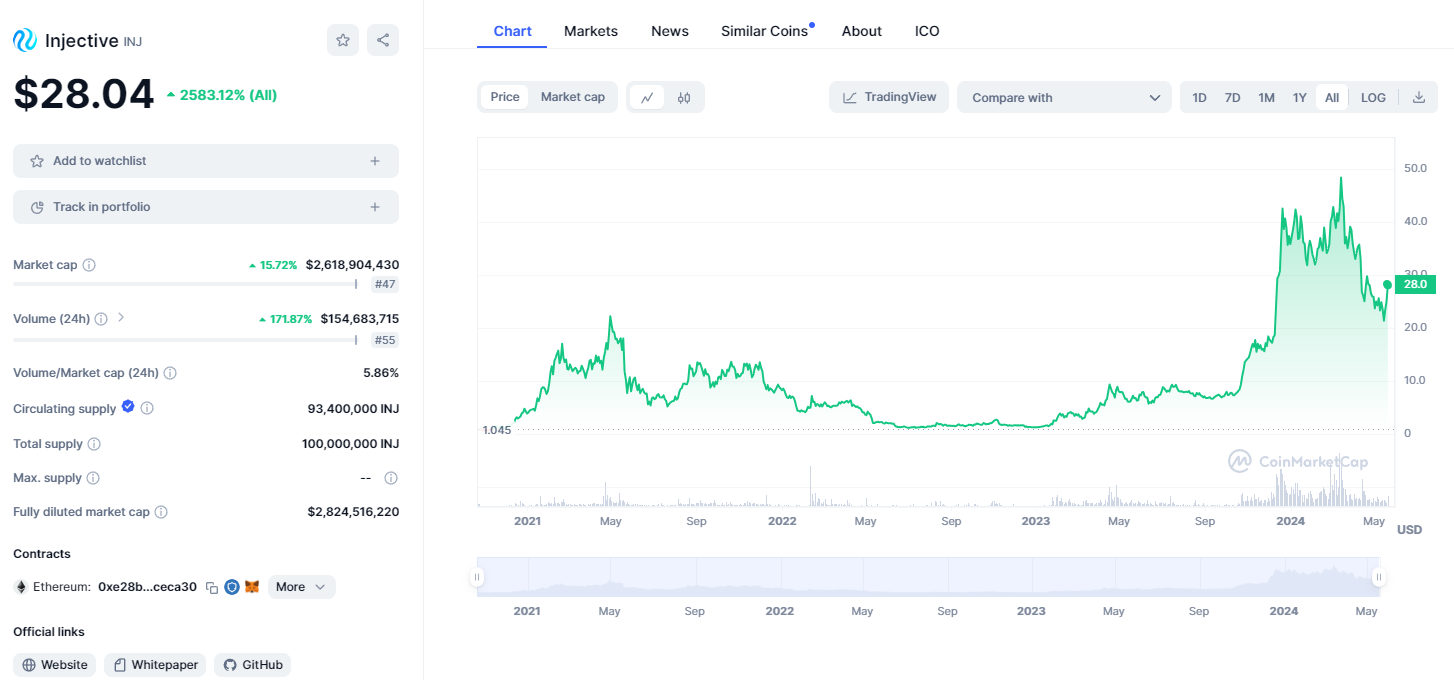 Injective - любимчик этого цикла, третье место после Kaspa в трендах. Какая-то хуйня если честно, но росла отлично, еще покажет себя до осени.