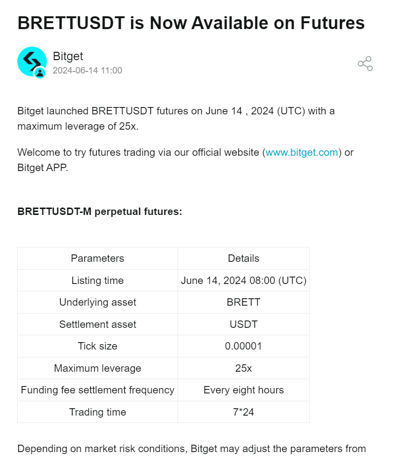 Давече синяя жаба $BRETT отскочила от своего дна и начала движение в сторону 2.5B Mcap. За последний месяц бретт оверперформил каждый мемкойн, ежедневно листится на новых биржах и коллаборирует с крупными компаниями.