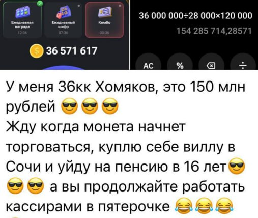 >Ещё и подогретая успехом, ибо люди получили деньги просто играя в тапалку, вне зависимости от текущей цены Давай все называть своими именами. Ты только что признал, что эта аудитория не платежеспособна и ее цель - получить больше, а потратить меньше. Найс клиенты