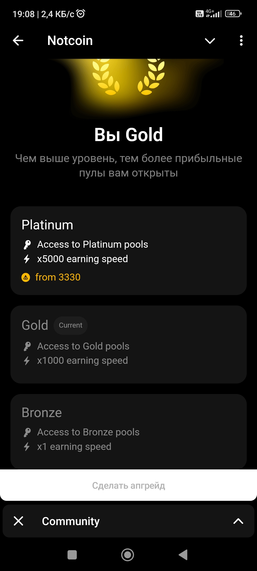Прайсы на апгрейд ебейшие. Даёт надежду на то, что пулы будут суперприбыльными. Хотя кому я пизжу, обычный объеб на шекели. Короче, покупать сейчас платину будет только полный долбоеб. Подожду, если выкатят что-то с хорошей доходностью - апну уровень.