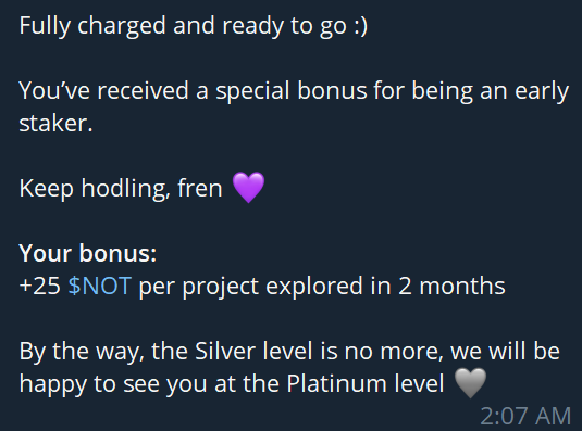 Тысячи пользователей от уровня Silver до Platinum получили награды за повышение ценности Notcoin Explore.
