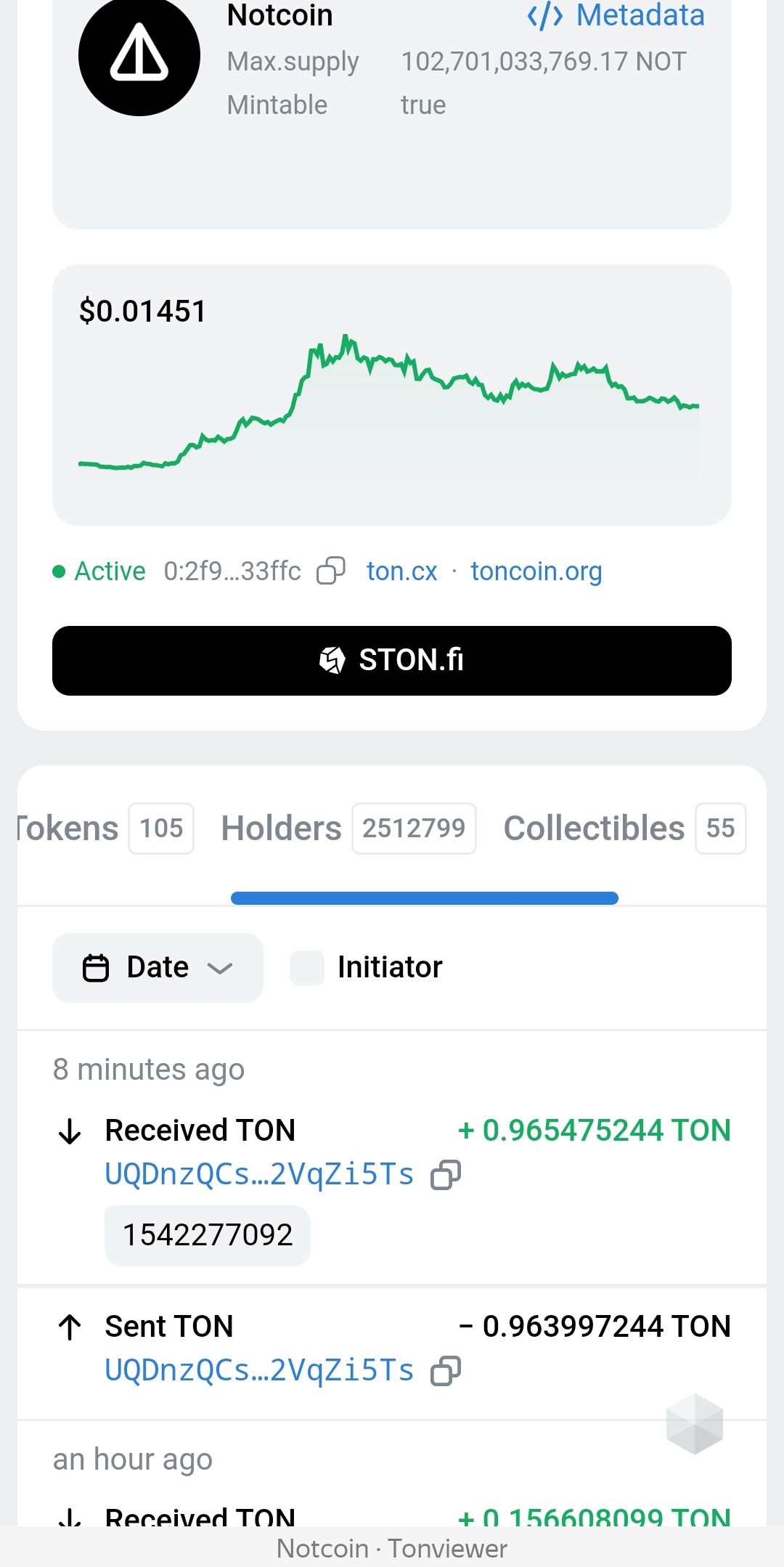 Notcoin (NOT) — это цифровая криптовалюта, цель которой — переопределить традиционные концепции цифровой валюты с помощью уникальной технологии блокчейна. Notcoin, созданный как безопасная, эффективная и масштабируемая платформа, ориентирован на обеспечение быстрых транзакций и низких комиссий. Будучи приверженцем инноваций, Notcoin стремится устранить ограничения существующих криптовалют и способствовать их широкому распространению. Будущее Notcoin может быть многообещающим, если оно будет развиваться и расширяться в различных отраслях.