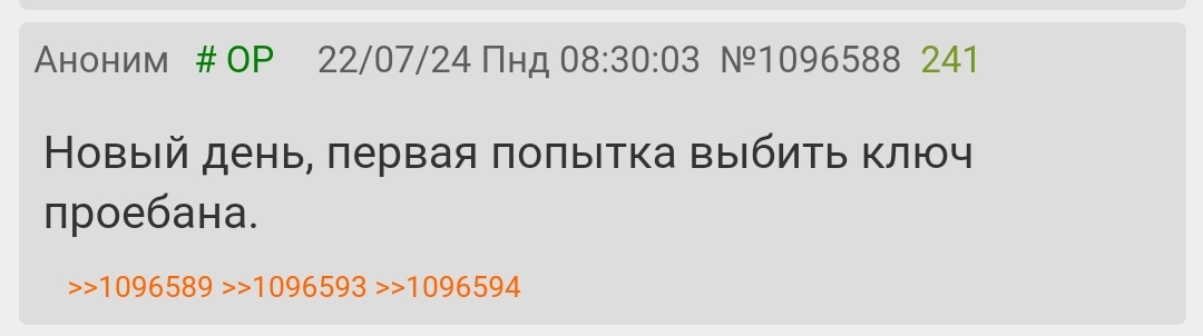 >>1099836 Сосет пока только ОП и его собратья-амебы без 12 ключей.