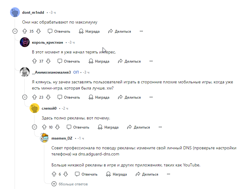 Повторяется история как с пятнашками в первые дня. Убогим уже и гайд написали, как рекламу отключить и стратегии расписали как по-фасту взять ключи. Но нет. Будут, ныть, тупить, смотреть рекламу, звать маму, ругаться. Насколько же люди отупели после ковида, это просто пиздец